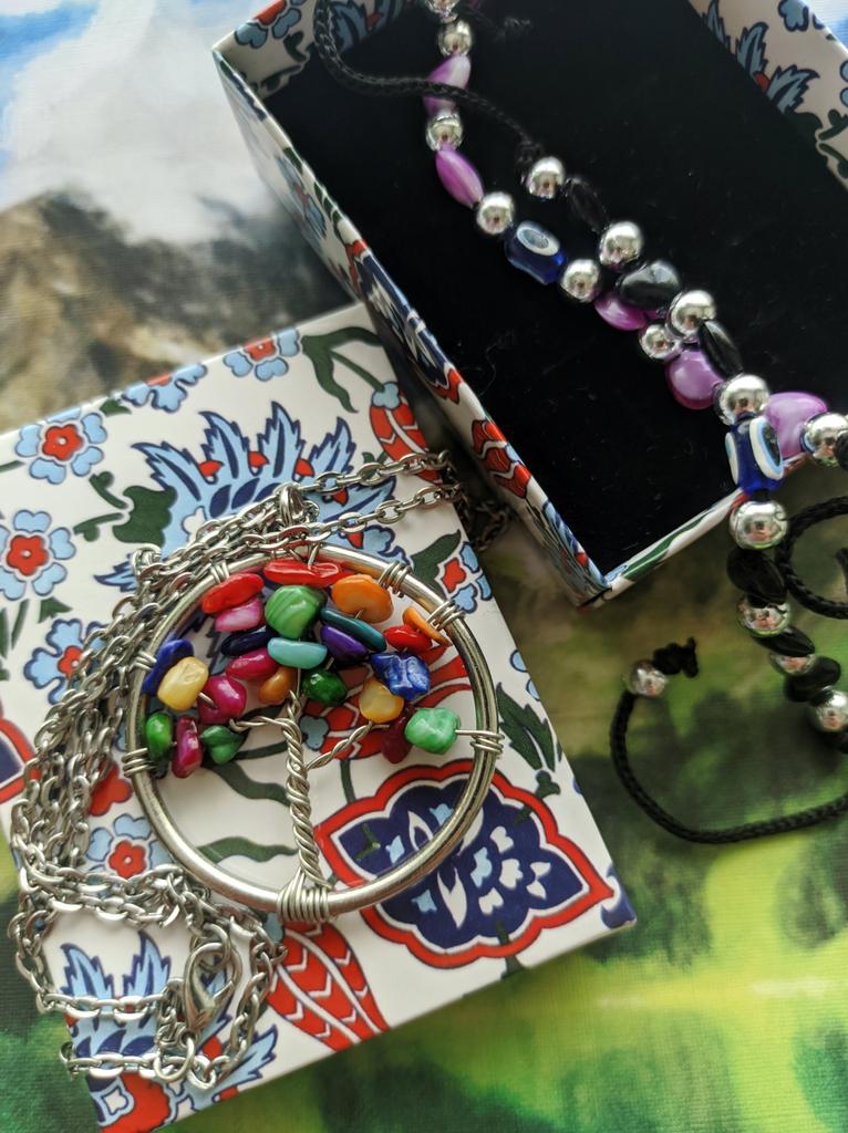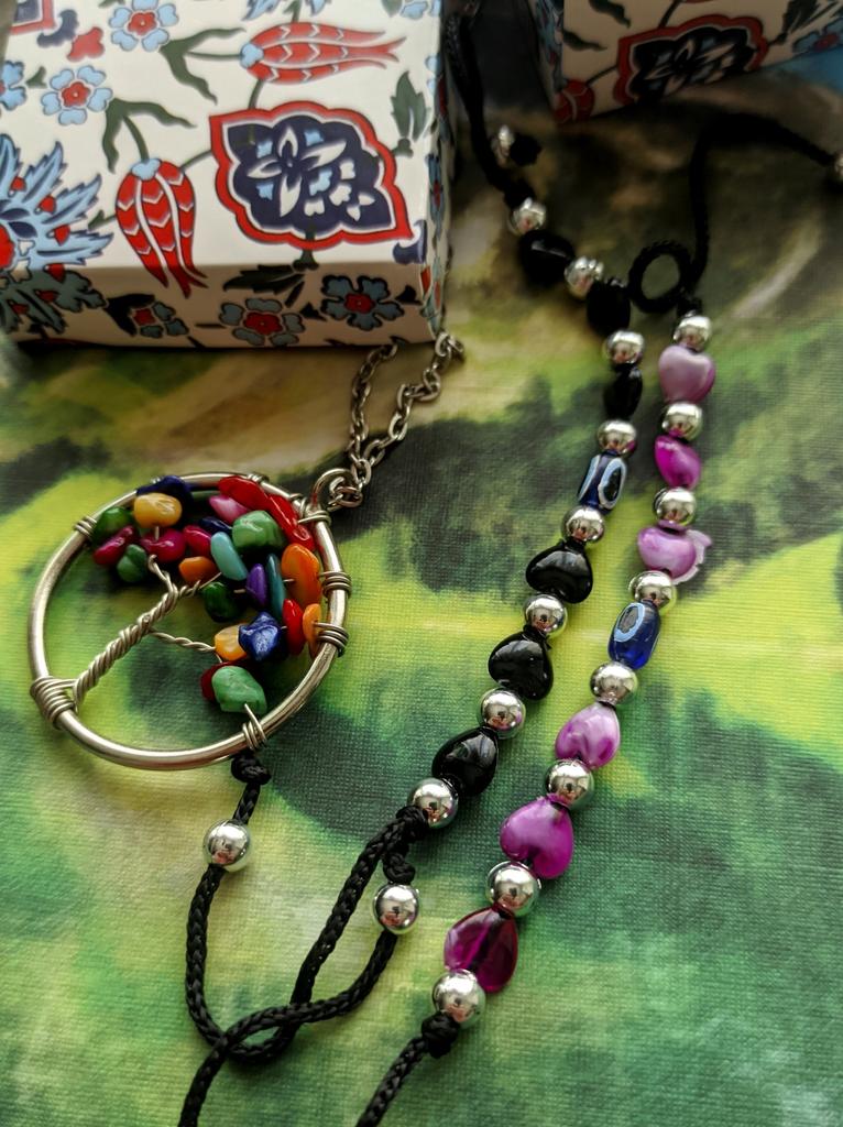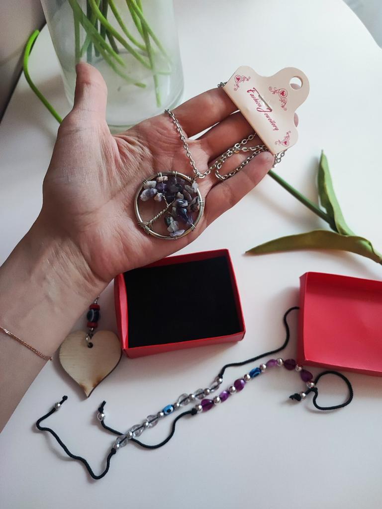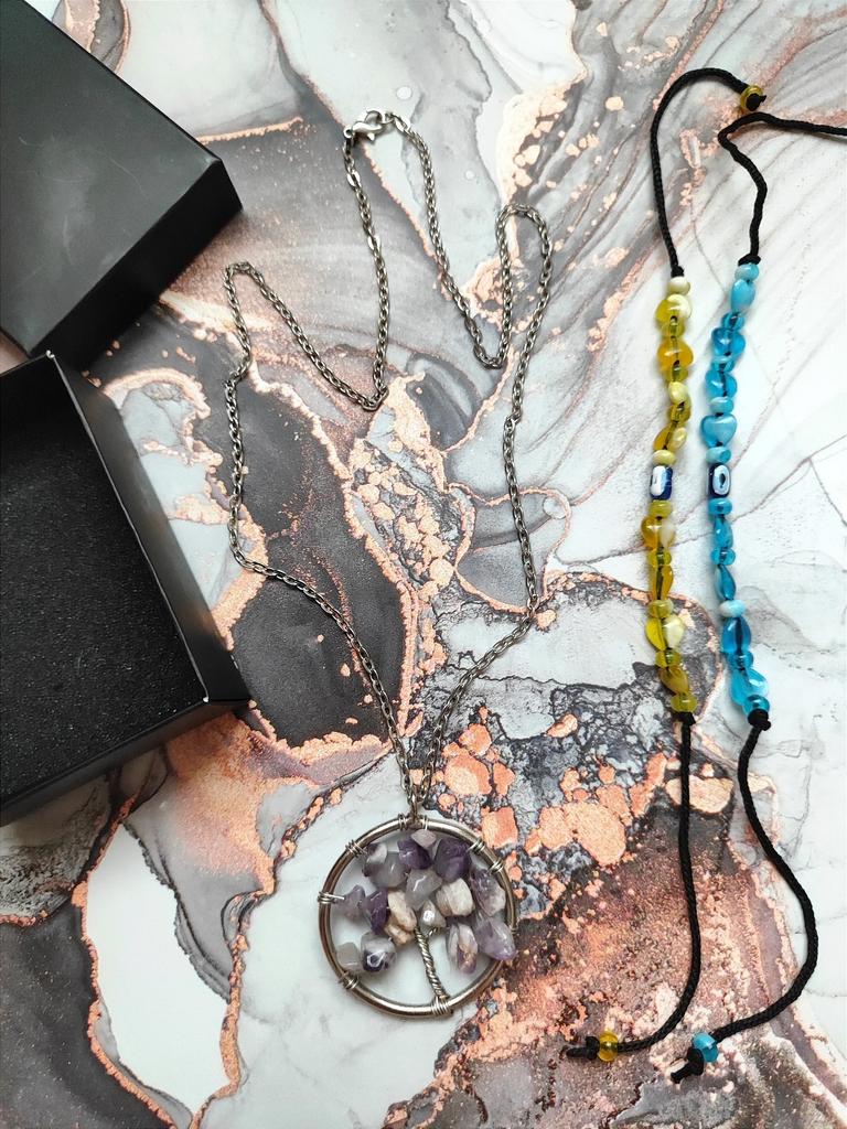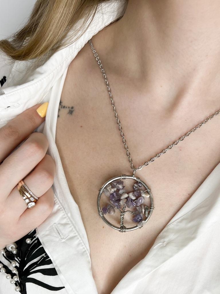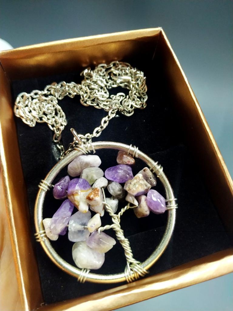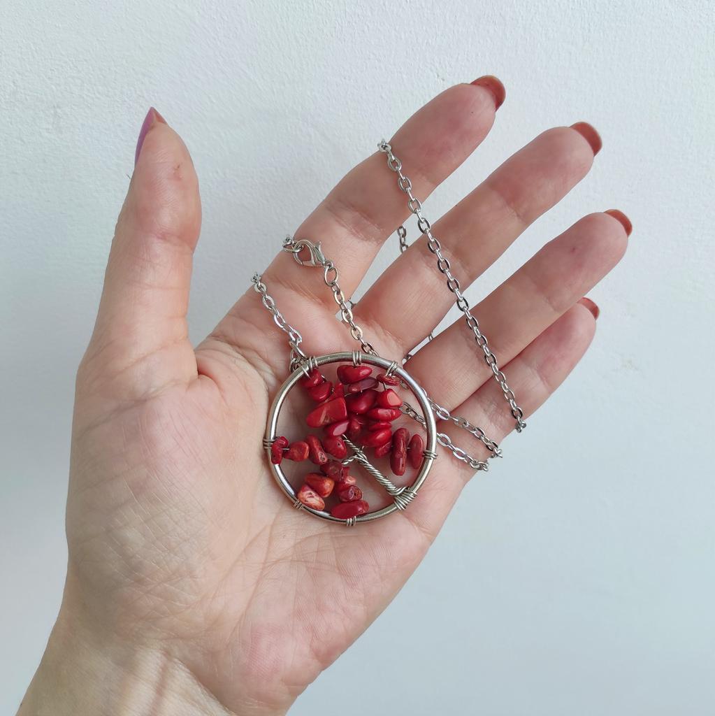 Nacre ,Garnet ,Chakra,Tiger Eye,Stone Coral, Turquoise, Amethyst, Aventurine, Natural Stone Wire Wrapped Tree of Life Natural Stone Necklace