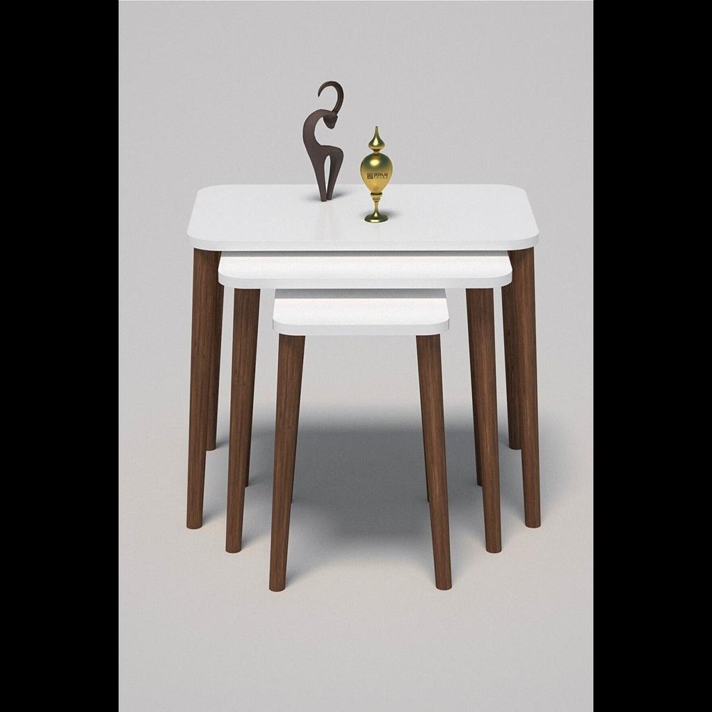 Nesting Table Wooden Lathe Leg White