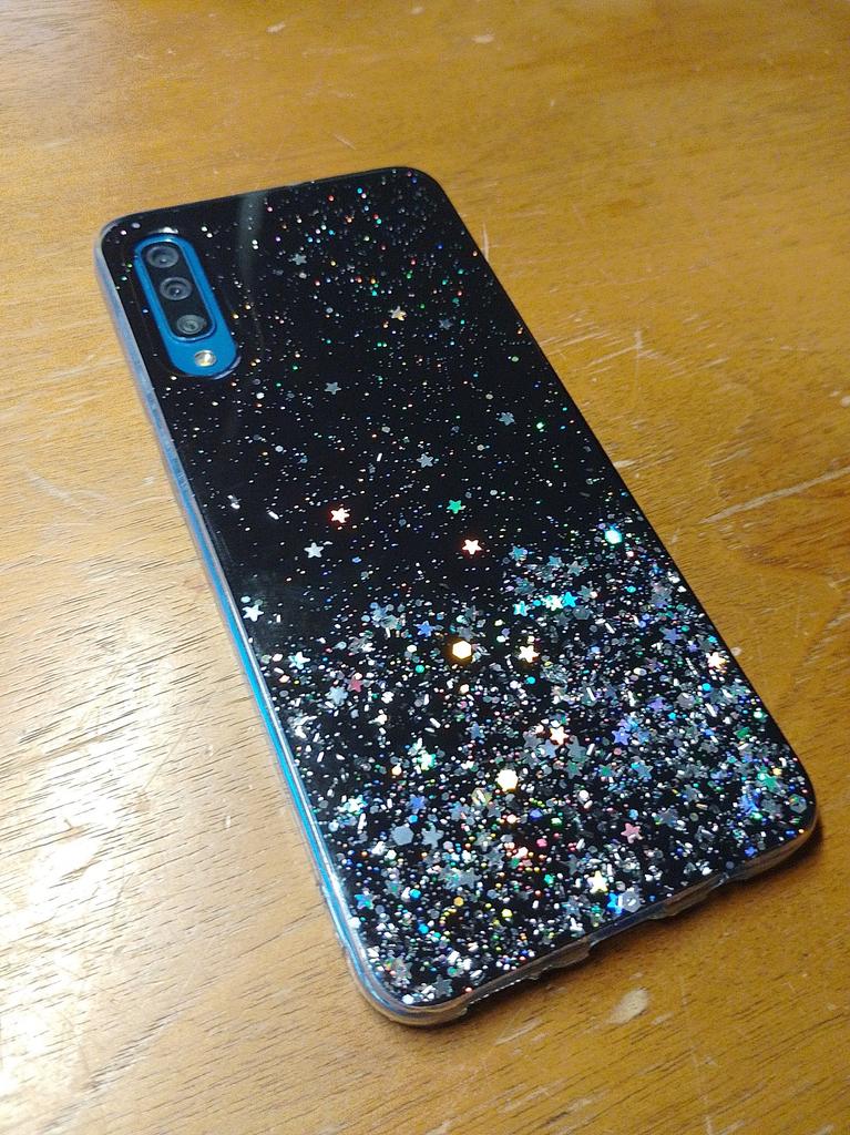 Funny mobile phone case with a lot of glitter and bling-bling. π€©
