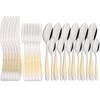Package Included:6Pcs Dinner Knife+ 6Pcs Dinner Fork+ 6Pcs Dinner Spoon +6Pcs Teaspoon.