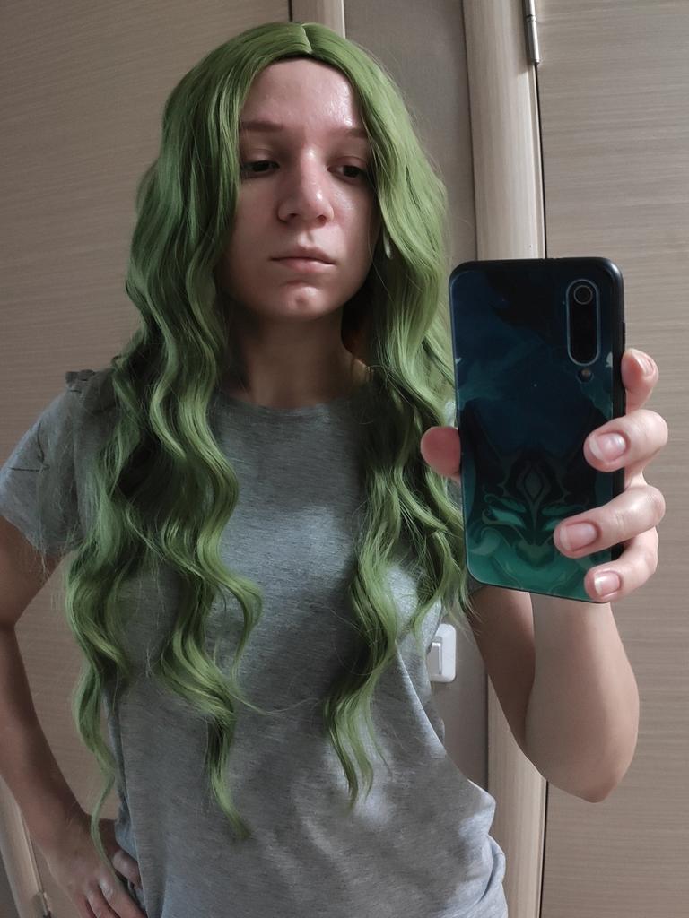 MISS WIG Long Wavy Green Synthetic Heat-Resistant Fiber Wig Women's Natural Half Part Cosplay Party Lolita Red Black Pink Wig