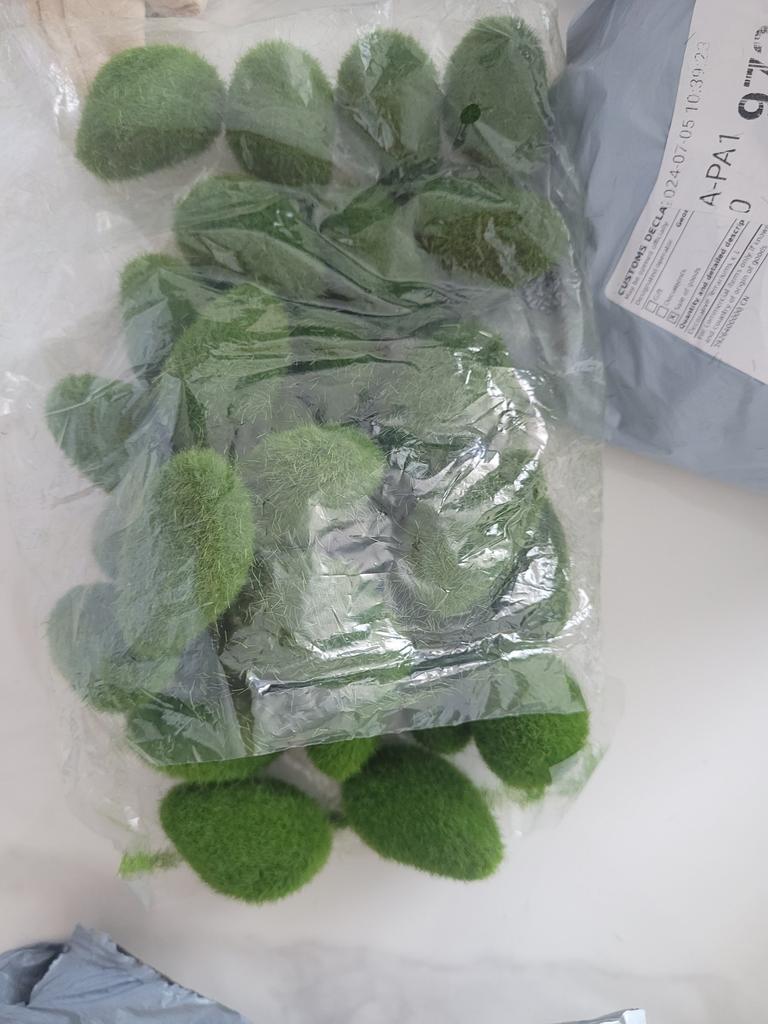 Everything arrived whole, 30 pcs. pebbles Everything corresponds to the photo and description. The size of one pebble from a matchbox. There is no chemical smell, the moss does not fall off, the lungs are as light as styrofoam. Thanks to the seller Jum 🤗✌