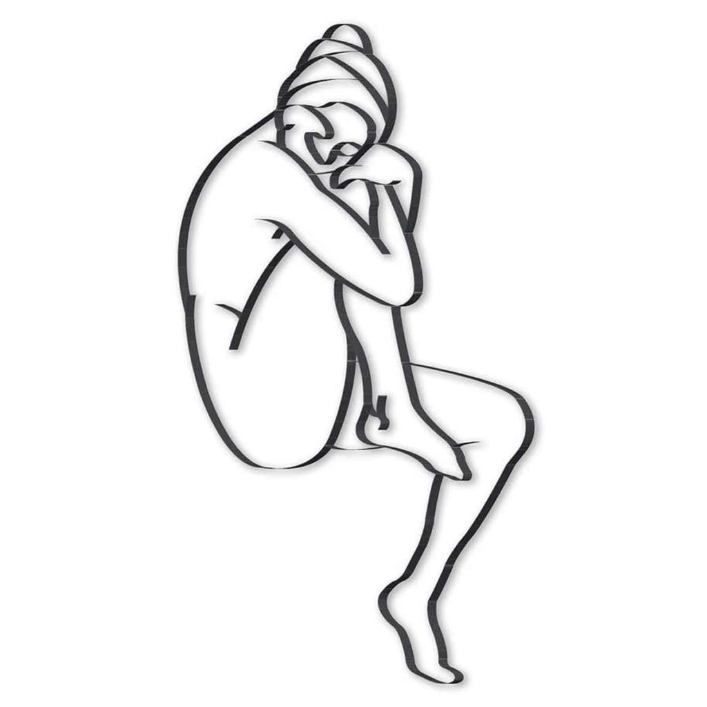 Les Trésors De Lily [A1071] - XXL Metal Decoration 'Seated Woman' Black - 90x44 Cm