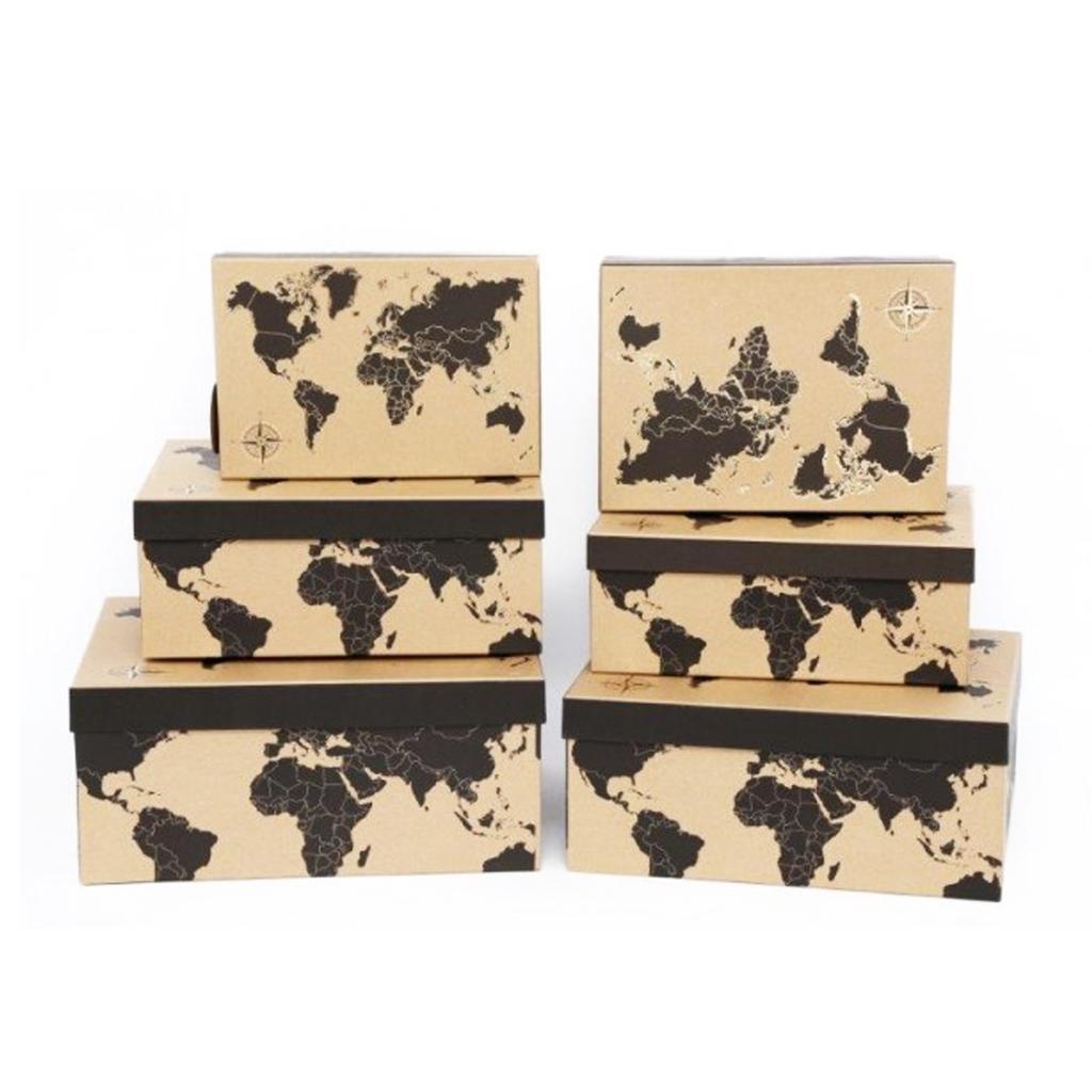 Les Trésors De Lily [A1399] - Set of 6 Souvenir Boxes 'Mappemonde' Black Beige - 36x28x16 Cm