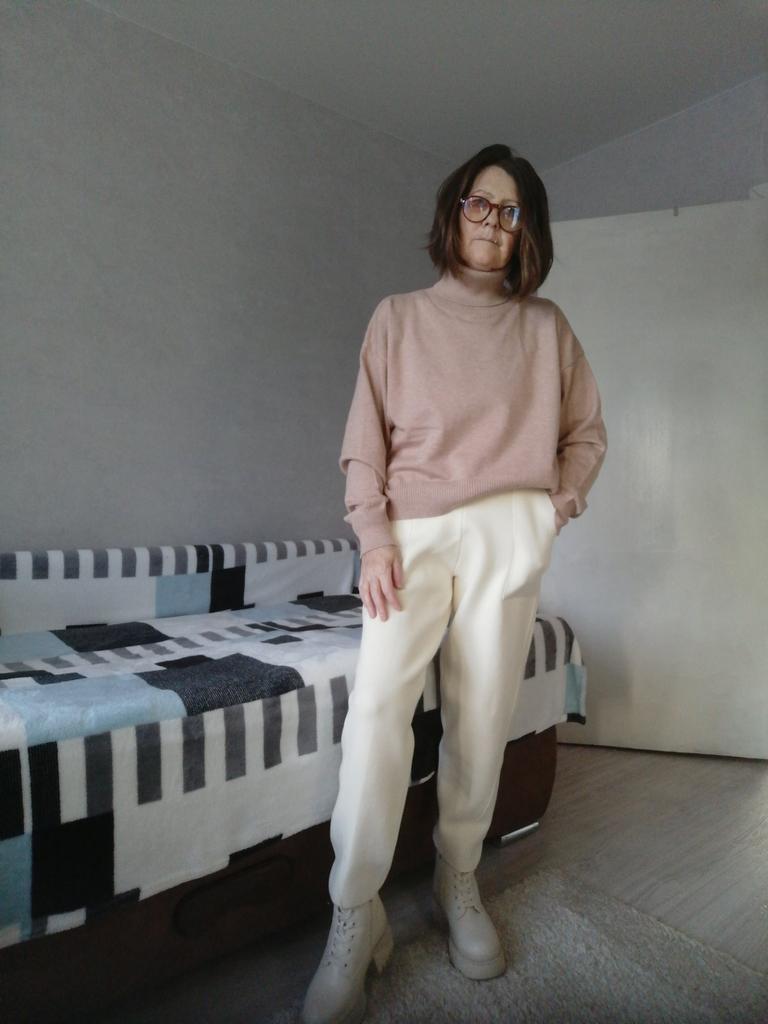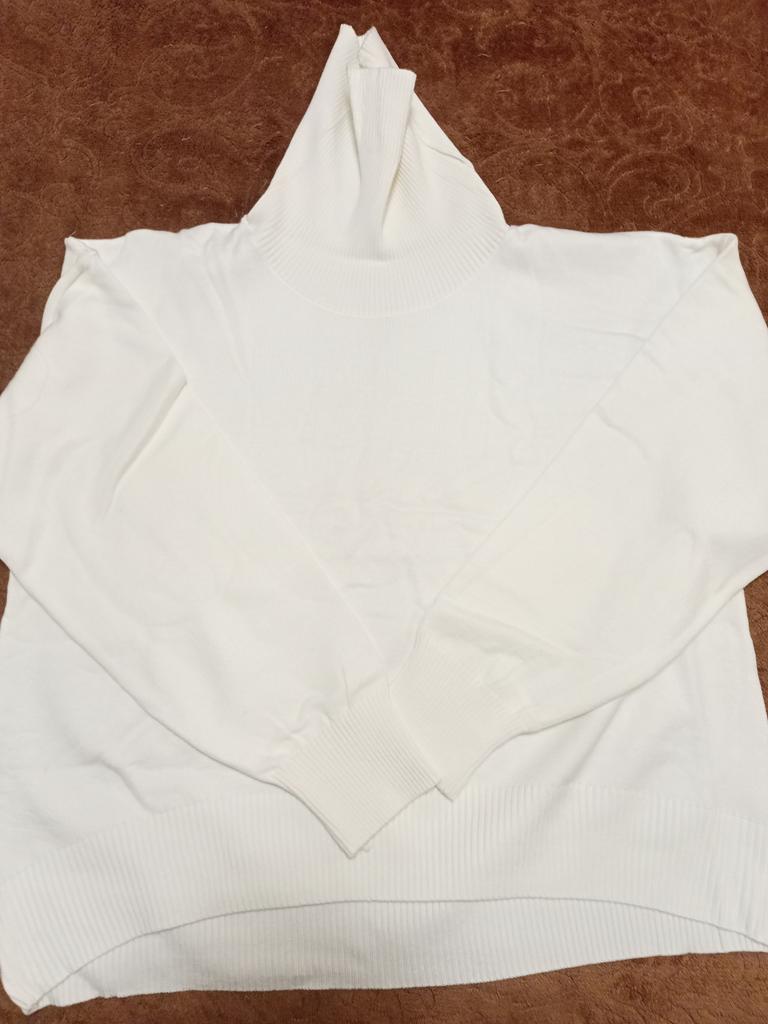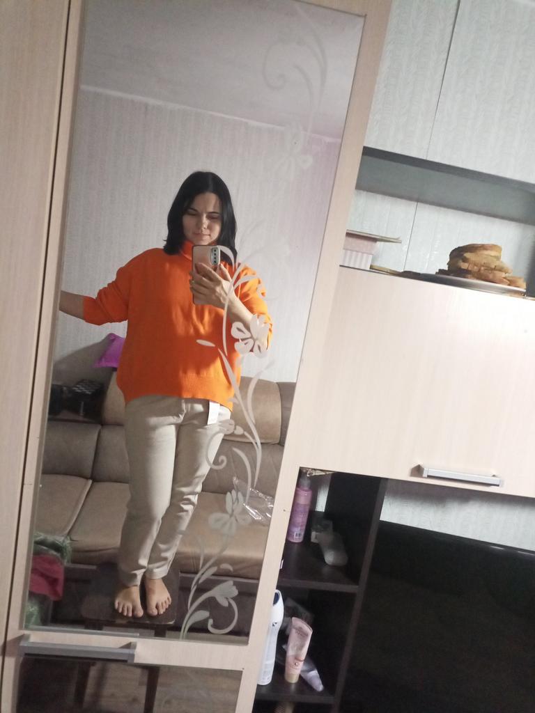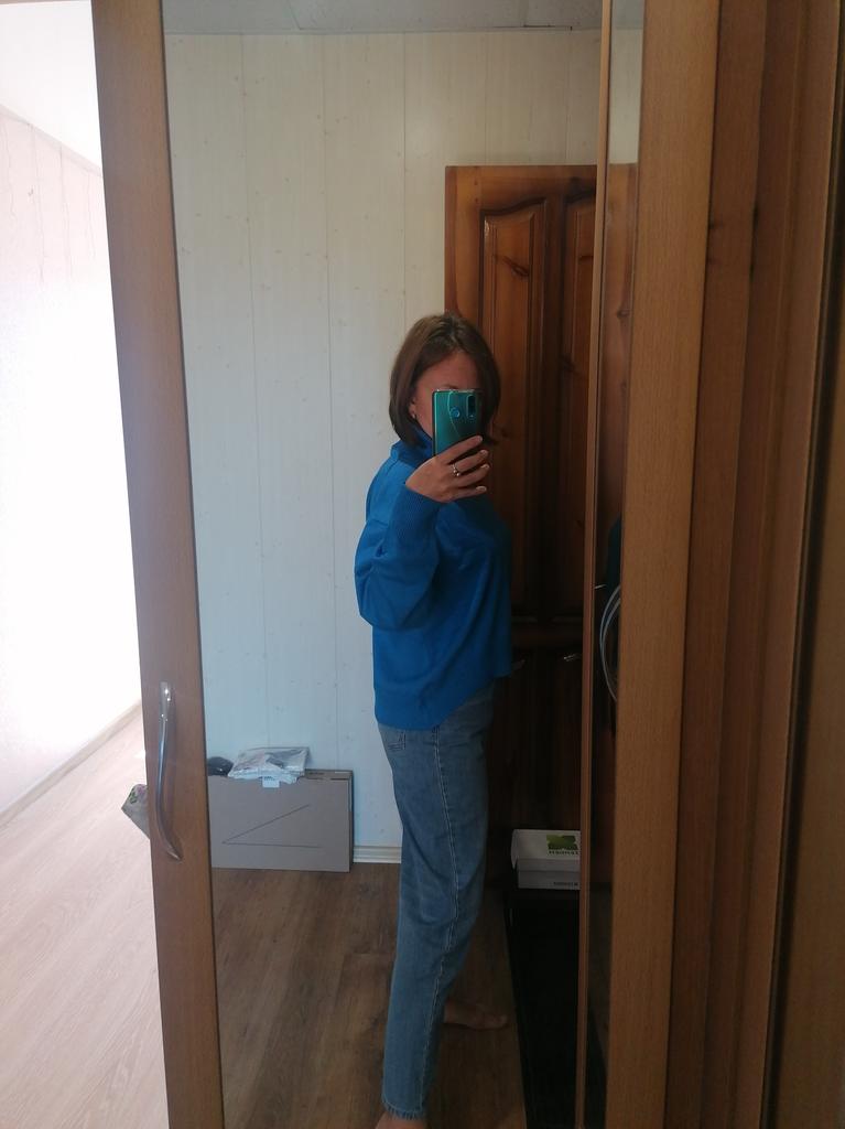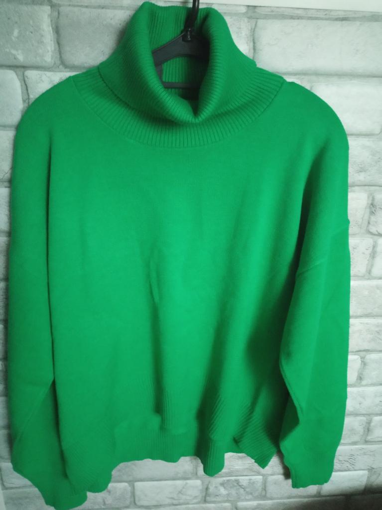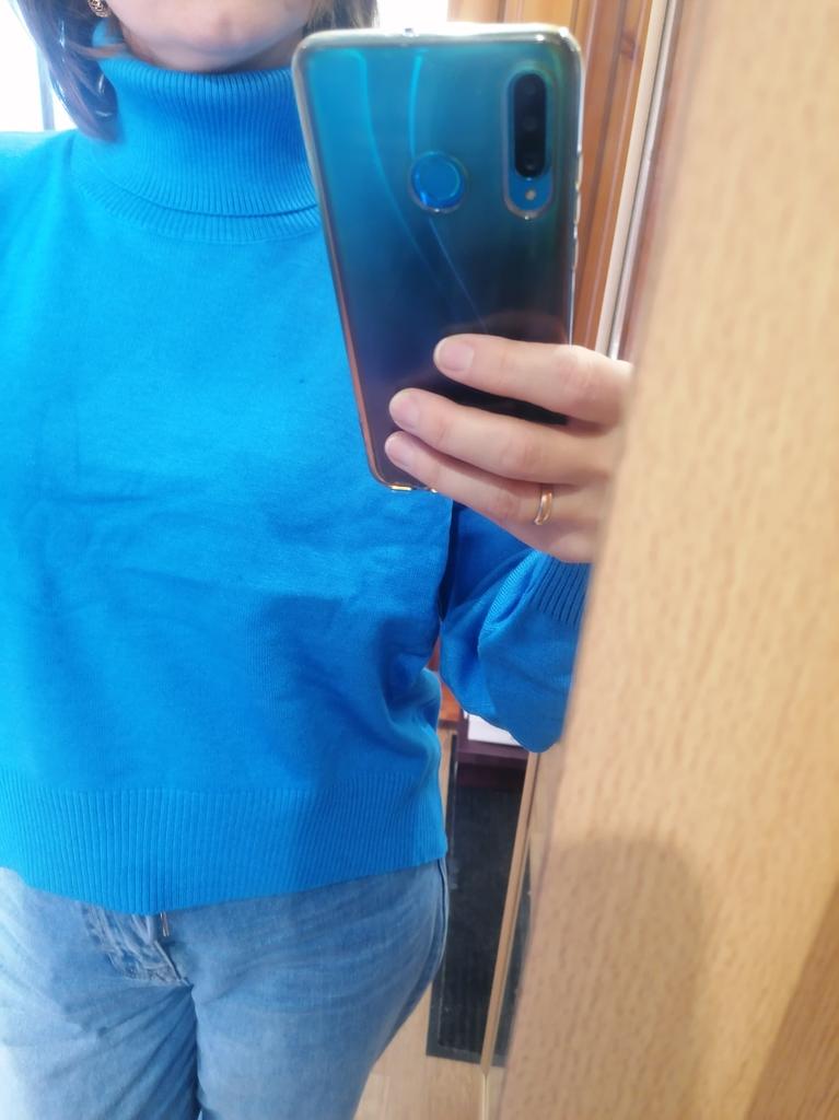 One of the advantages of the sweater is that it is a very beautiful color. I didn't like everything else Very thick knitwear, does not fit the figure The collar is high, it presses The style is unsuccessful - wide and short
