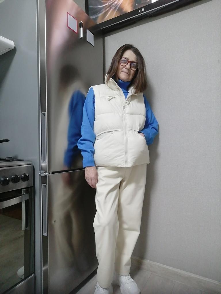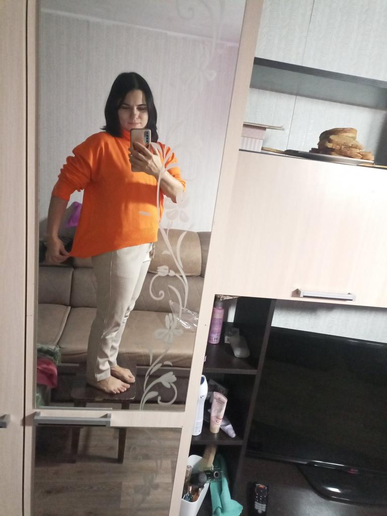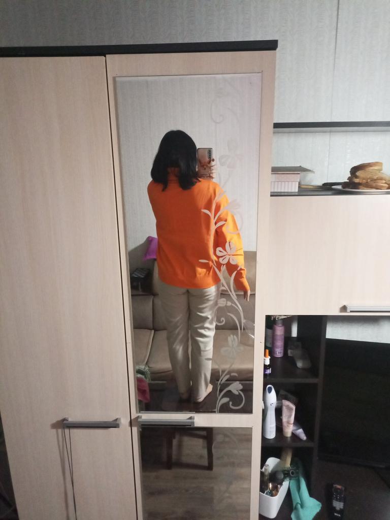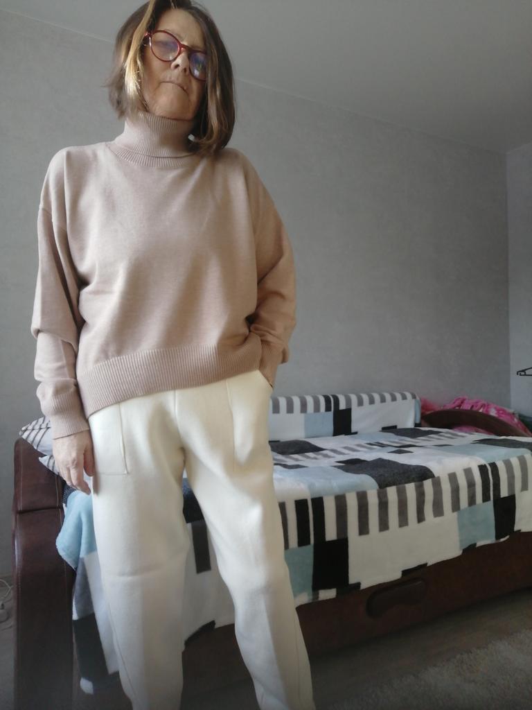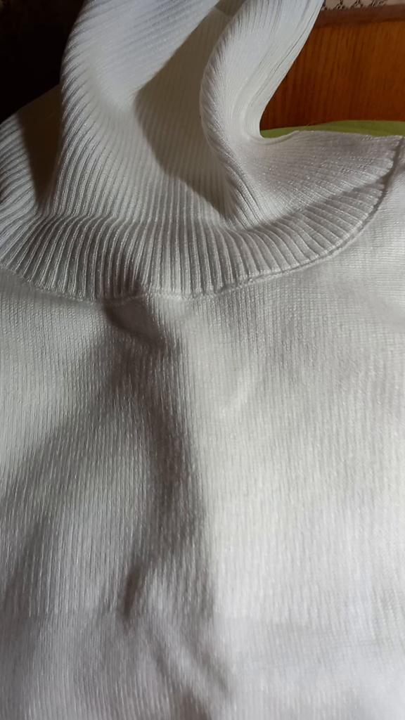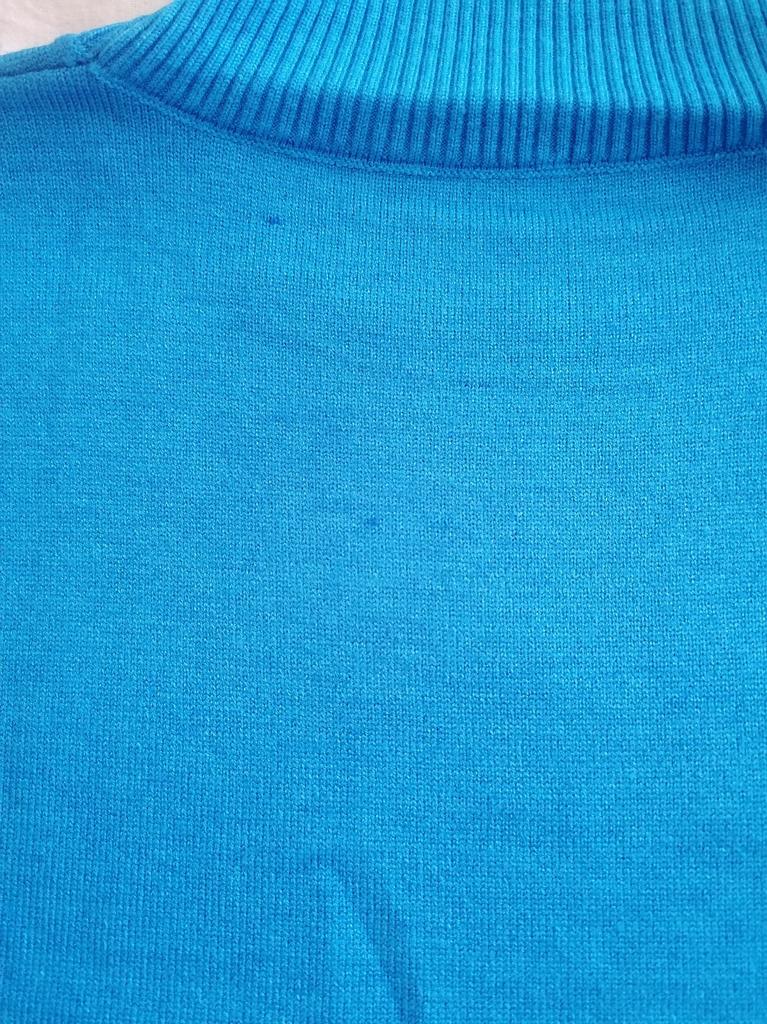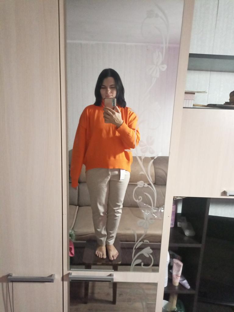 One of the advantages of the sweater is that it is a very beautiful color. I didn't like everything else Very thick knitwear, does not fit the figure The collar is high, it presses The style is unsuccessful - wide and short