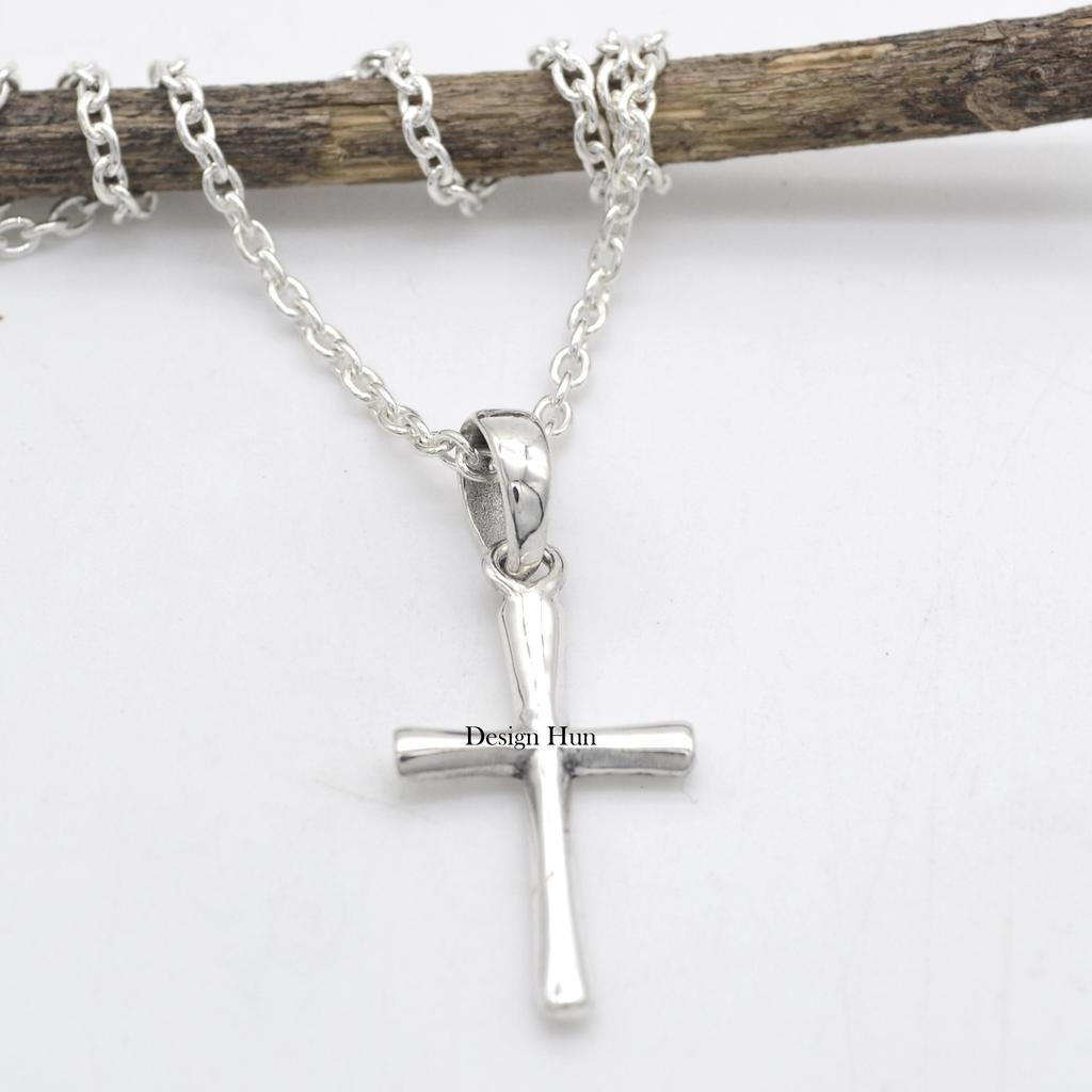 Sterling Silver Cross Necklace, Religious Jewelry Gift, Womens Christian Faith Medium Cross Pendant, Christmas Cross Gift,
