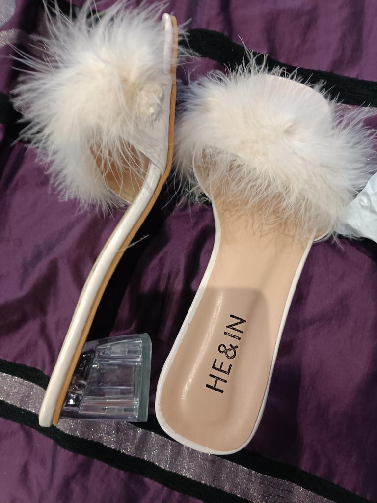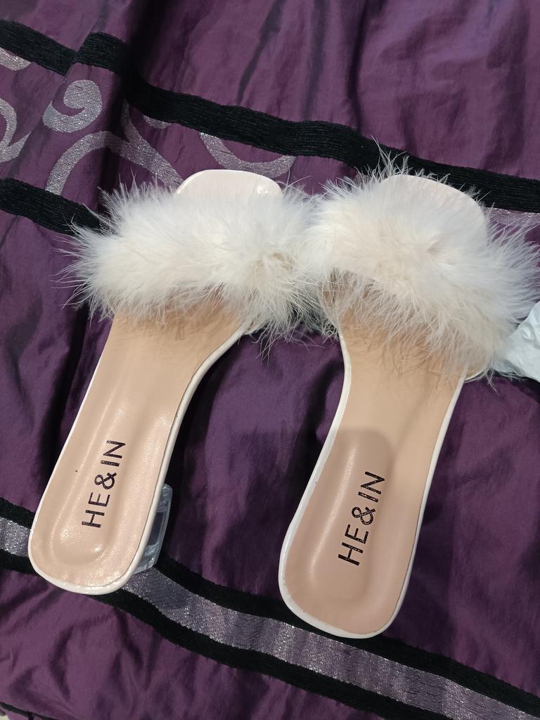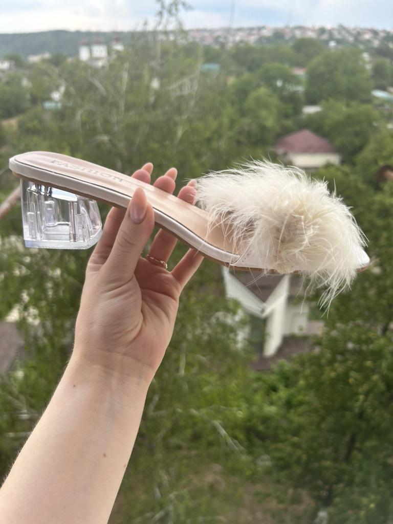 Lovely sandals. My bunion on my foot is not compressed at all. The feathers are of high quality and do not fall out. Photo matches