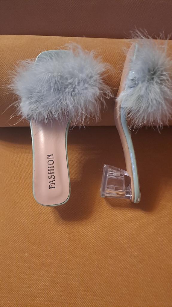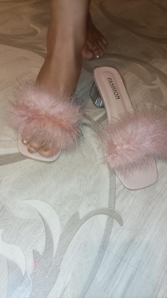 Summer Fluffy Peep Toe Sexy High Heels Women Shoes Fur Feather Lady Fashion Wedding Slip-On Pink Square Toe Women Sandals
