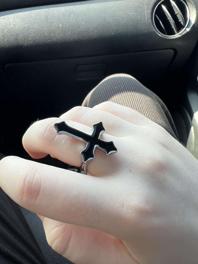 Vintage Black Cross Ring for Women Men Punk Cool Black Cross Chain Rings Fashion Gothic Finger Ring Party Jewelry Gifts