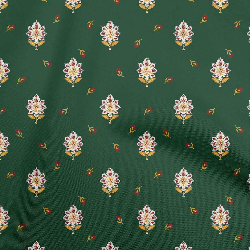 oneOone Cotton Flex Forest Green Fabric Jacobean Floral Diy Clothing Quilting Fabric Print Fabric By Yard 40 Inch