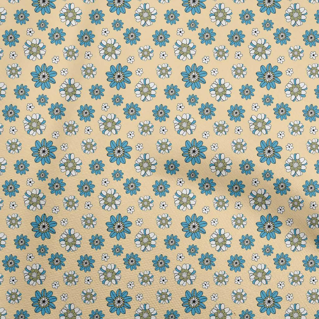 oneOone Cotton Poplin Light Beige Fabric Floral Retro Sewing Material Print Fabric By The Yard 42 Inch