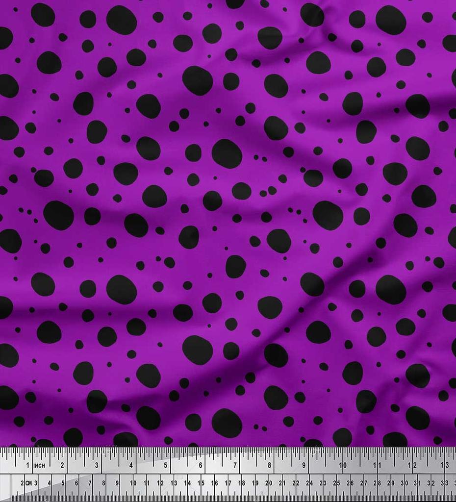 Soimoi Purple Japan Crepe Satin Fabric Black Dots Print Fabric by the Metre 42 Inch