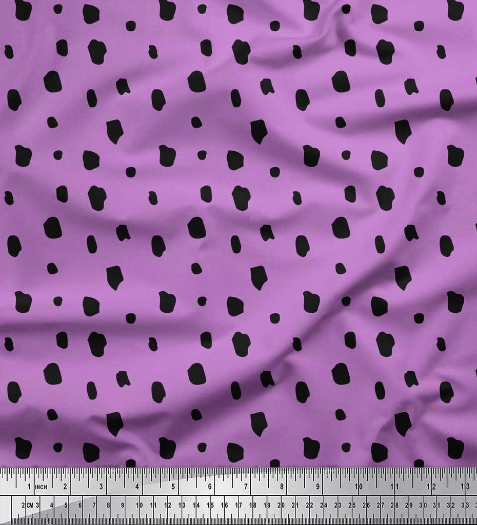 Soimoi Purple Japan Crepe Satin Fabric Brush Stroke & Dots Abstract Print Fabric by Metre 42 Inch