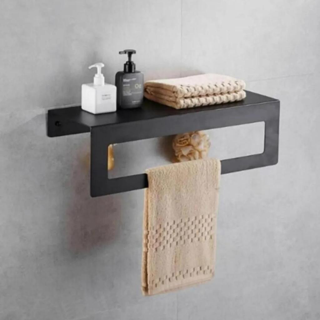 Towel Rack With Black Shelf, Towel Holder With Metal Shelf, Kitchen, Bathroom With Shelf, Towel Holder