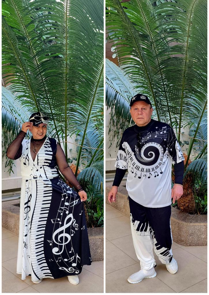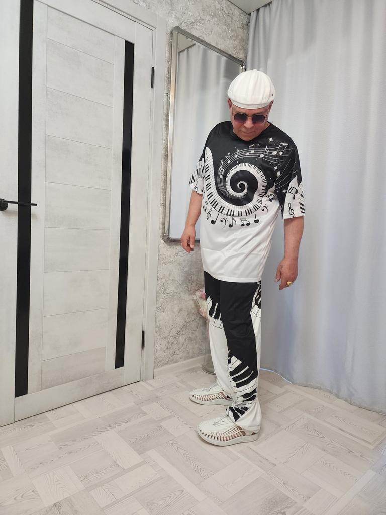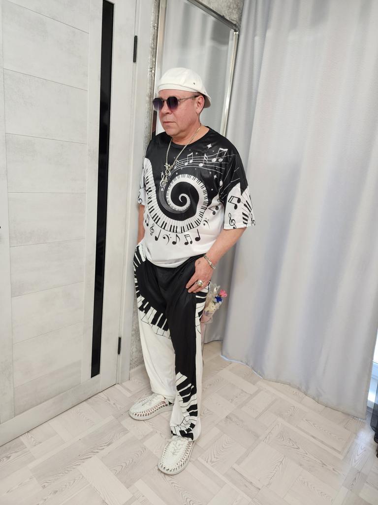 Men's Loose Casual Solid Color Trousers Elastic Tie Piano Keys Printed Straight Pants