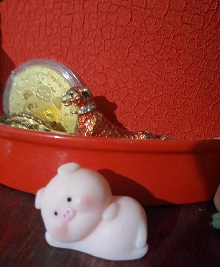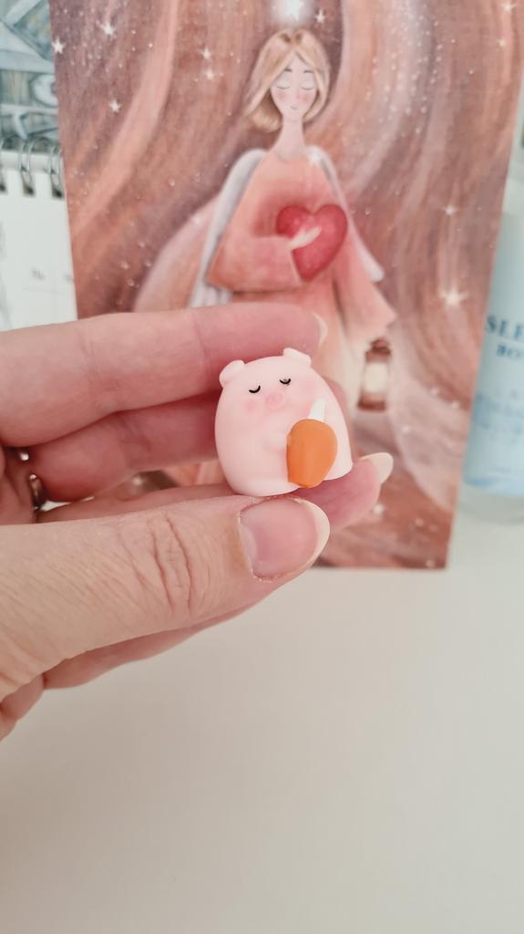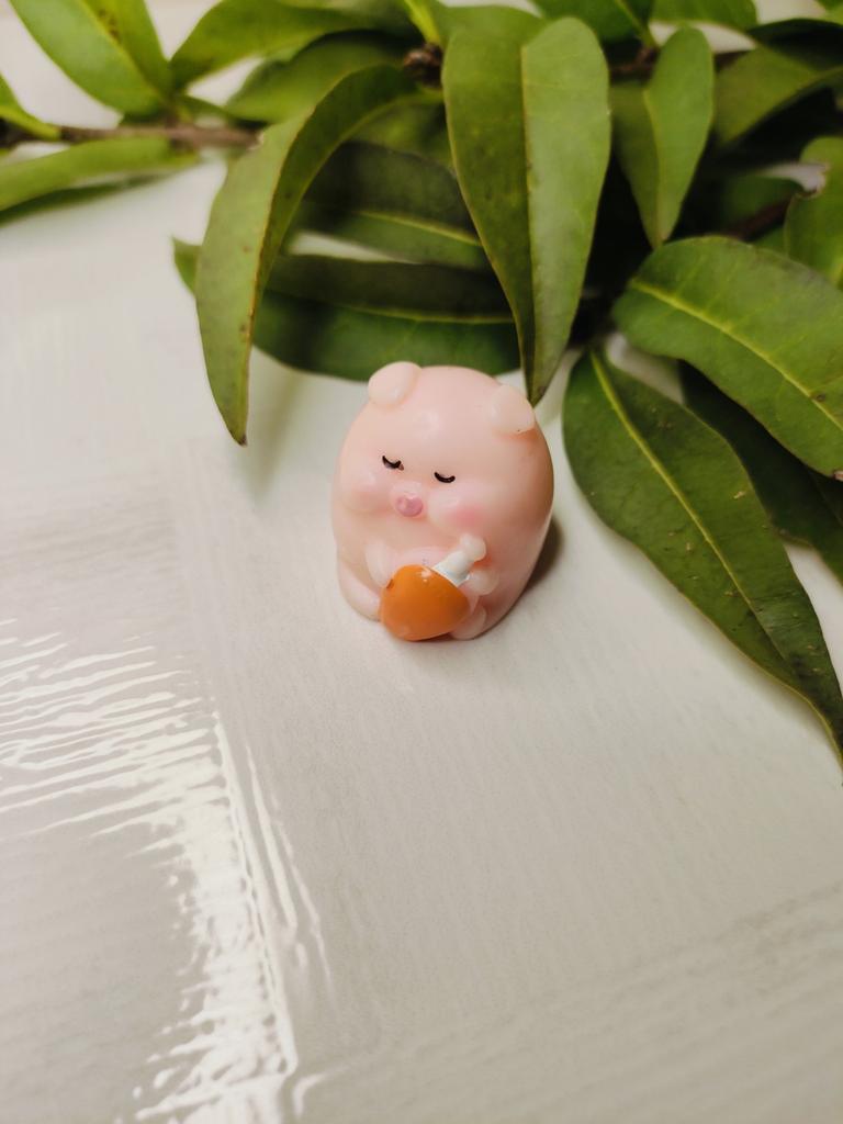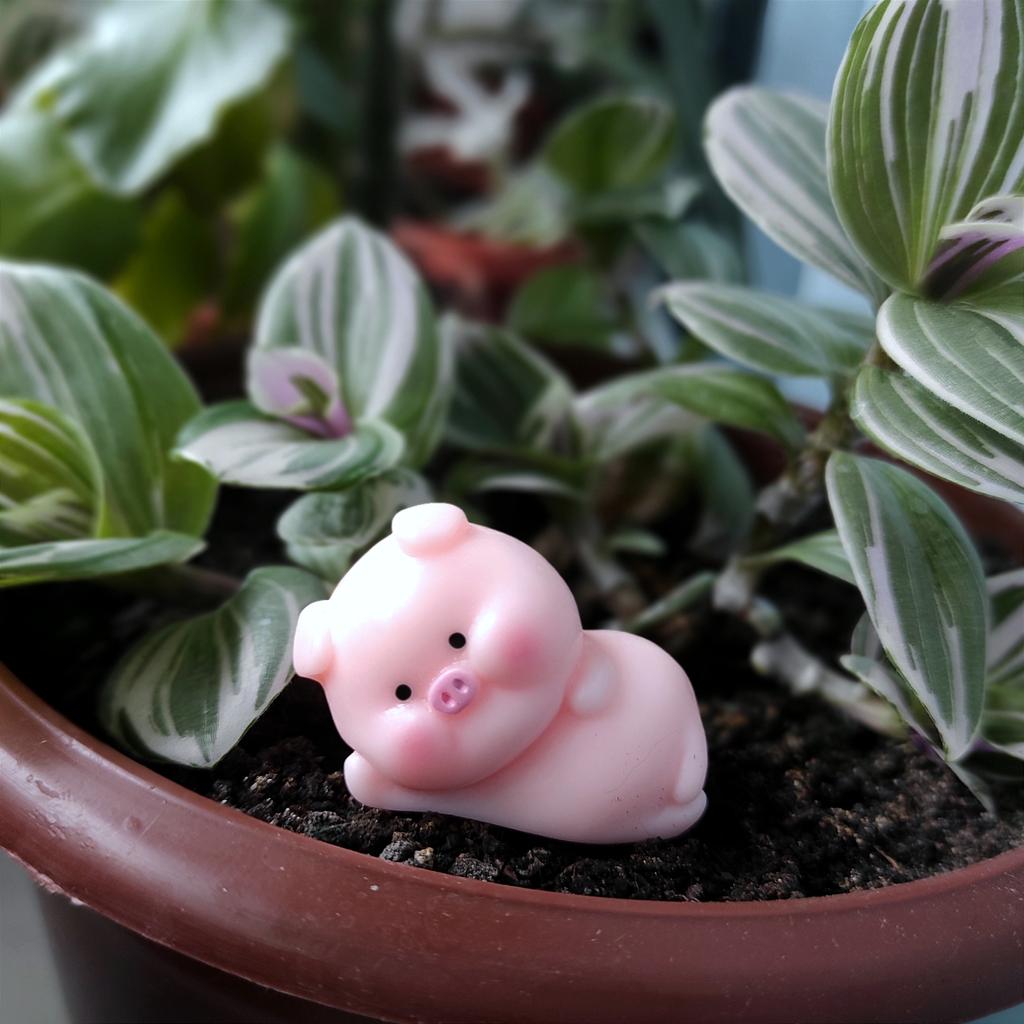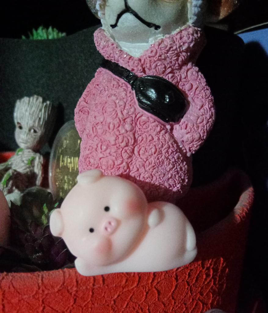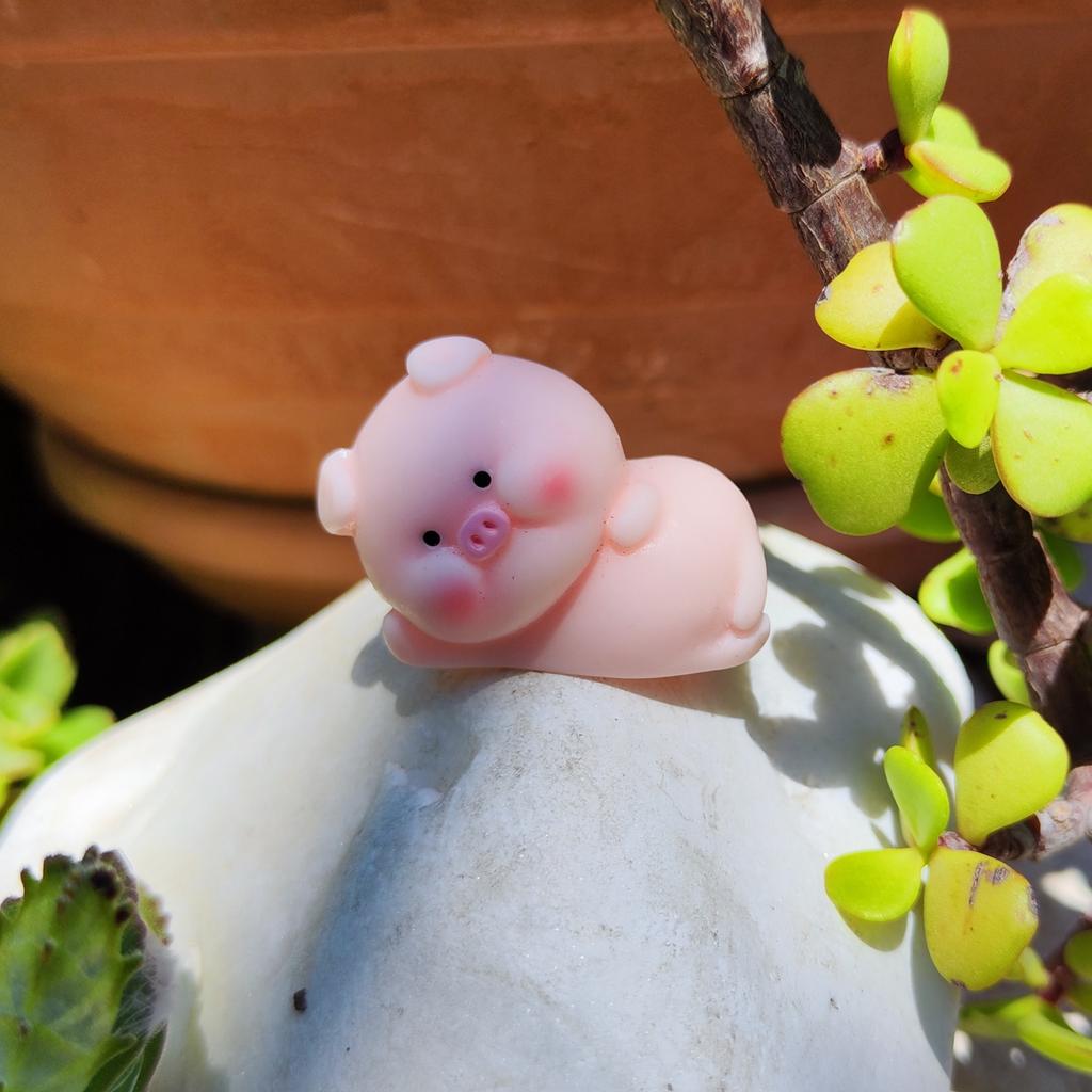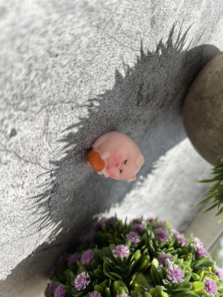 Miniature lucky pig ๐ I ordered this little decorative pig to decorate a shelf. Due to its small size, it is ideal to place anywhere, even to decorate the inside of a pot.. There are various designs of little pigs but I asked for the lying pig because for me it is the funniest. The little pigs are made of plastic, very well painted and with an excellent finish, I liked it a lot.
