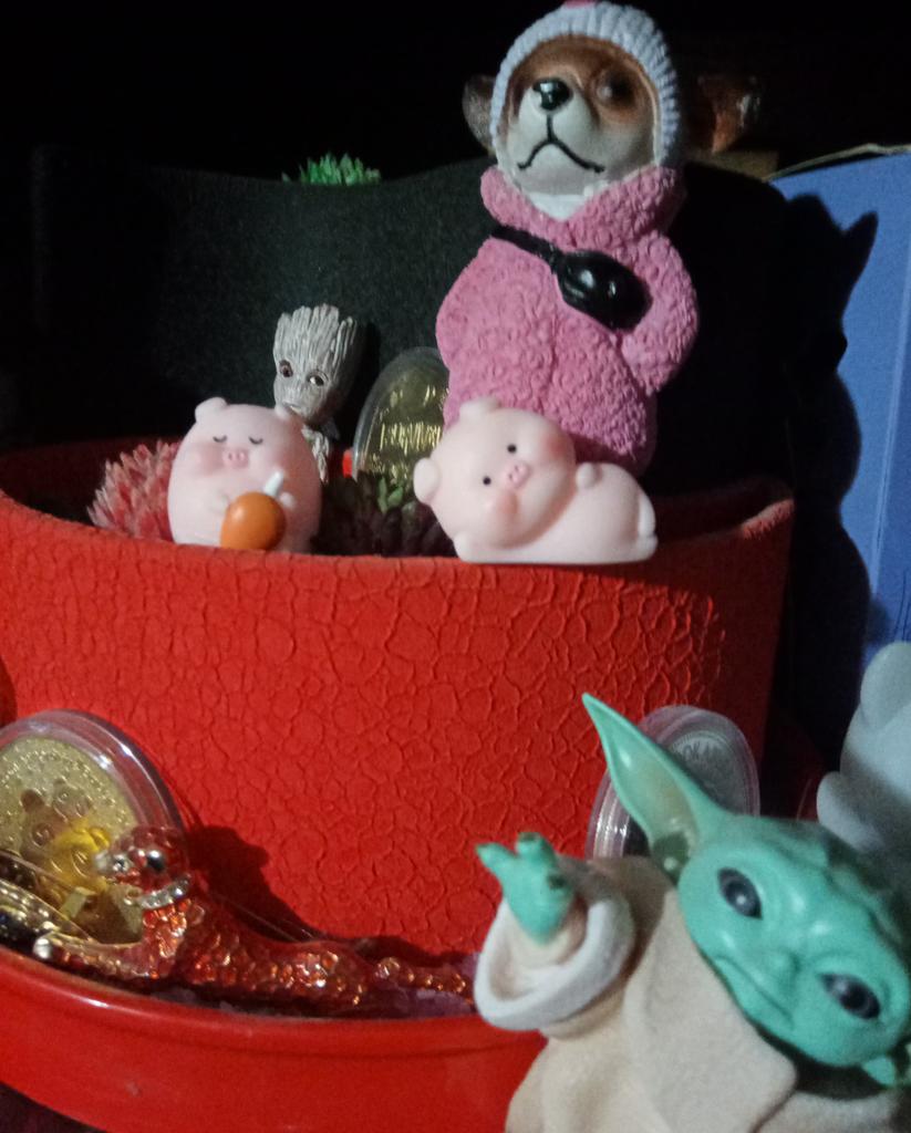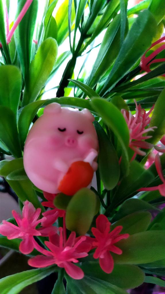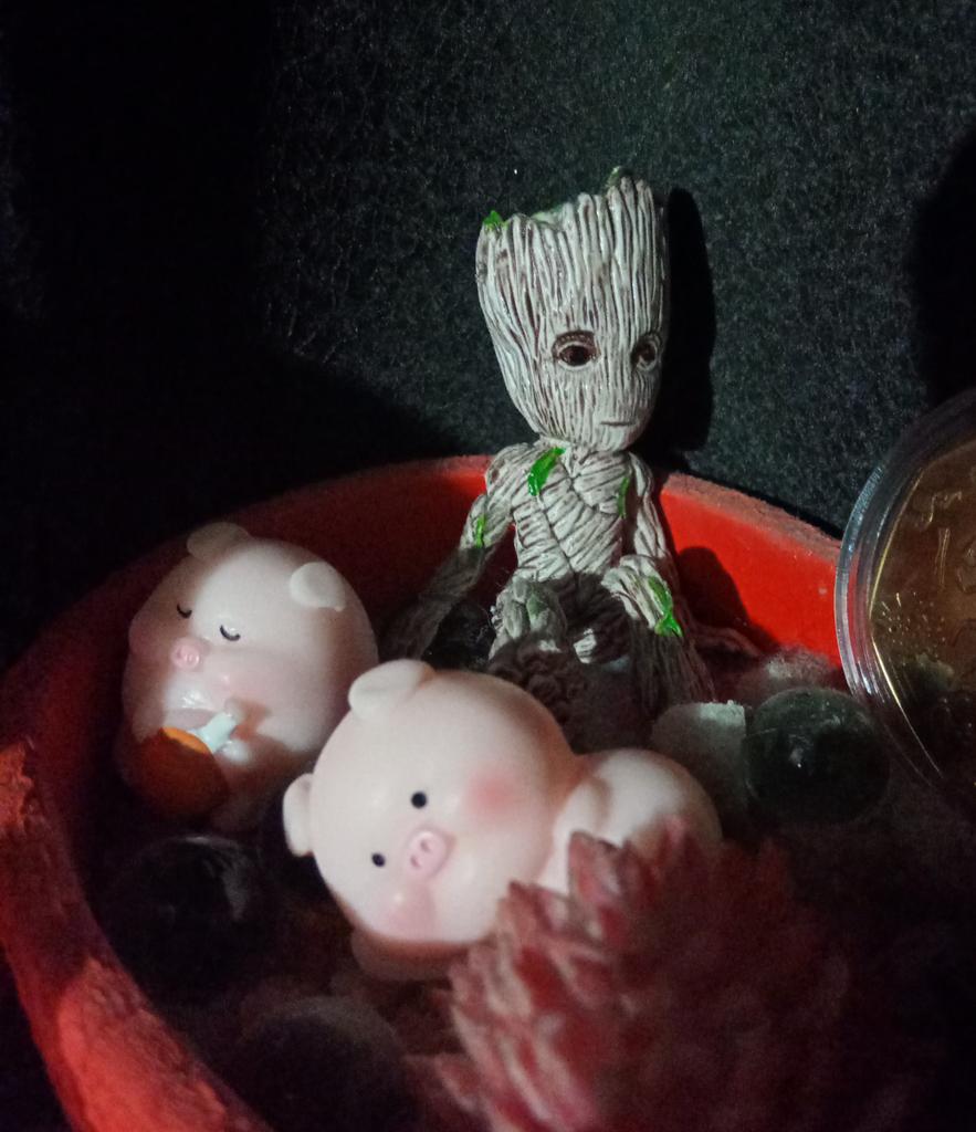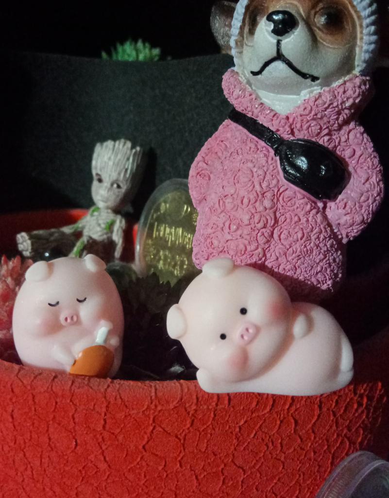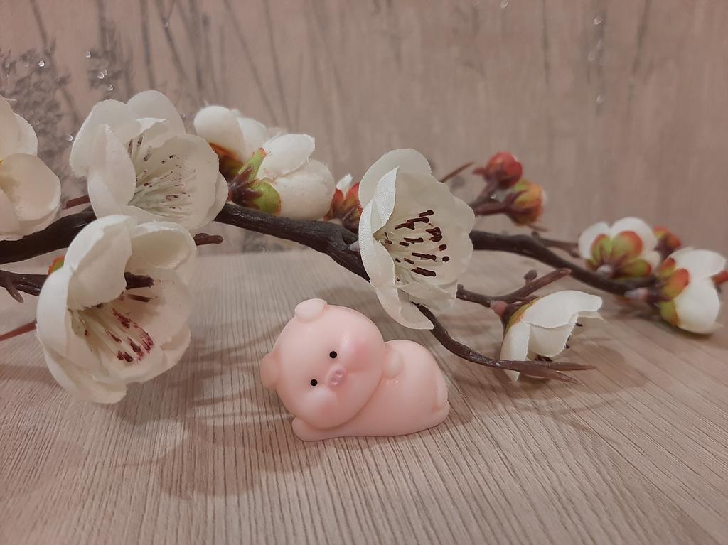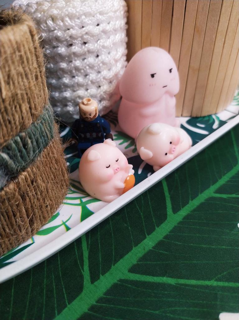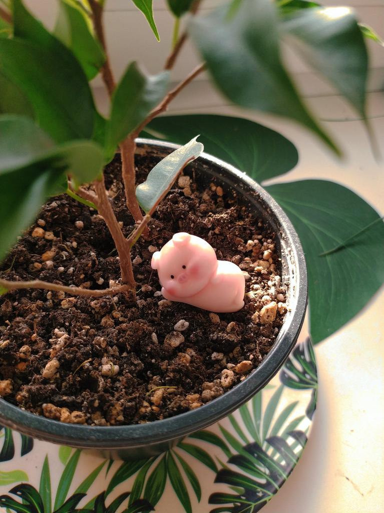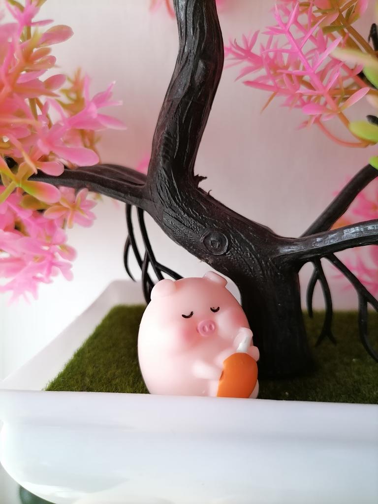 Miniature lucky pig ๐ I ordered this little decorative pig to decorate a shelf. Due to its small size, it is ideal to place anywhere, even to decorate the inside of a pot.. There are various designs of little pigs but I asked for the lying pig because for me it is the funniest. The little pigs are made of plastic, very well painted and with an excellent finish, I liked it a lot.