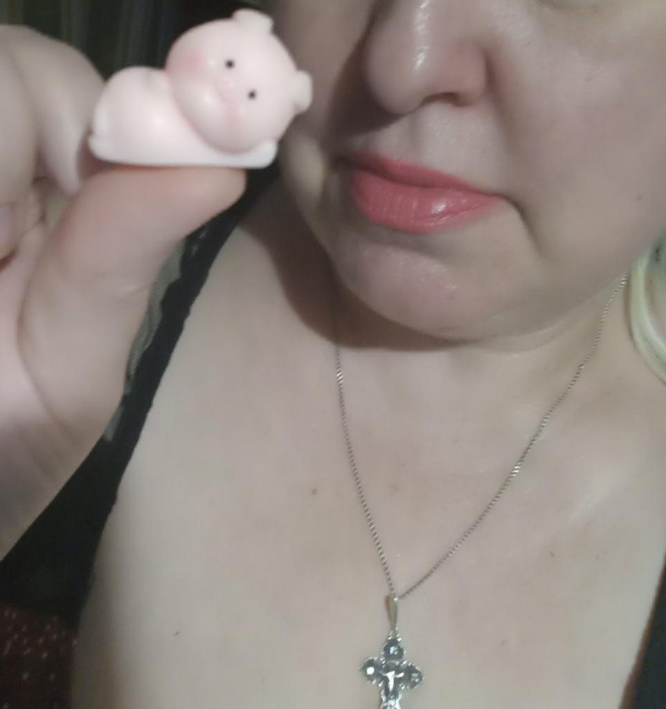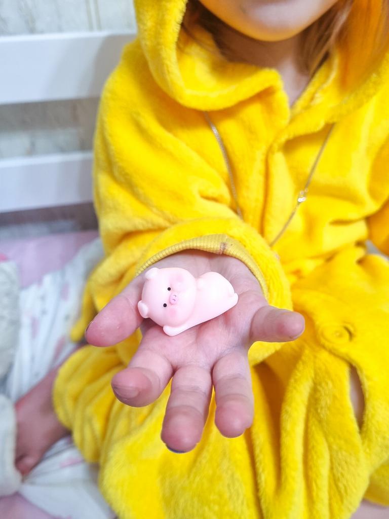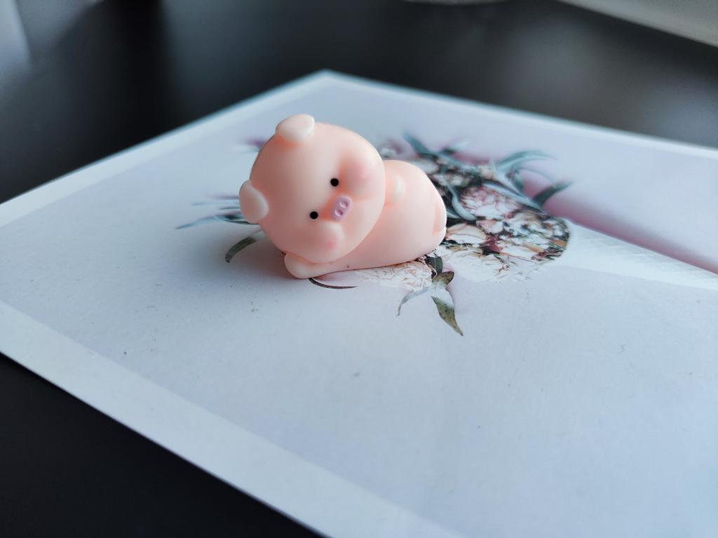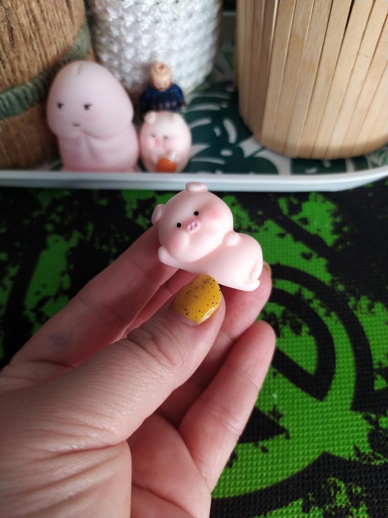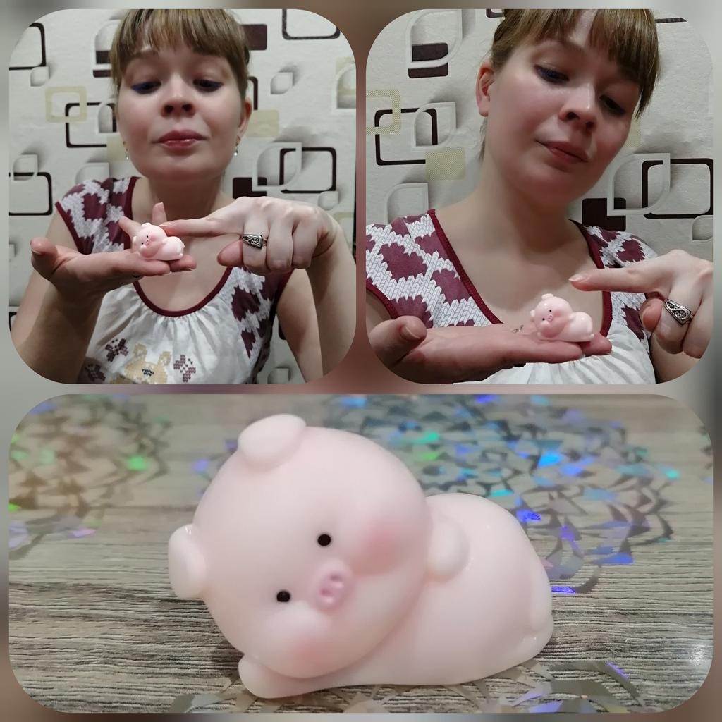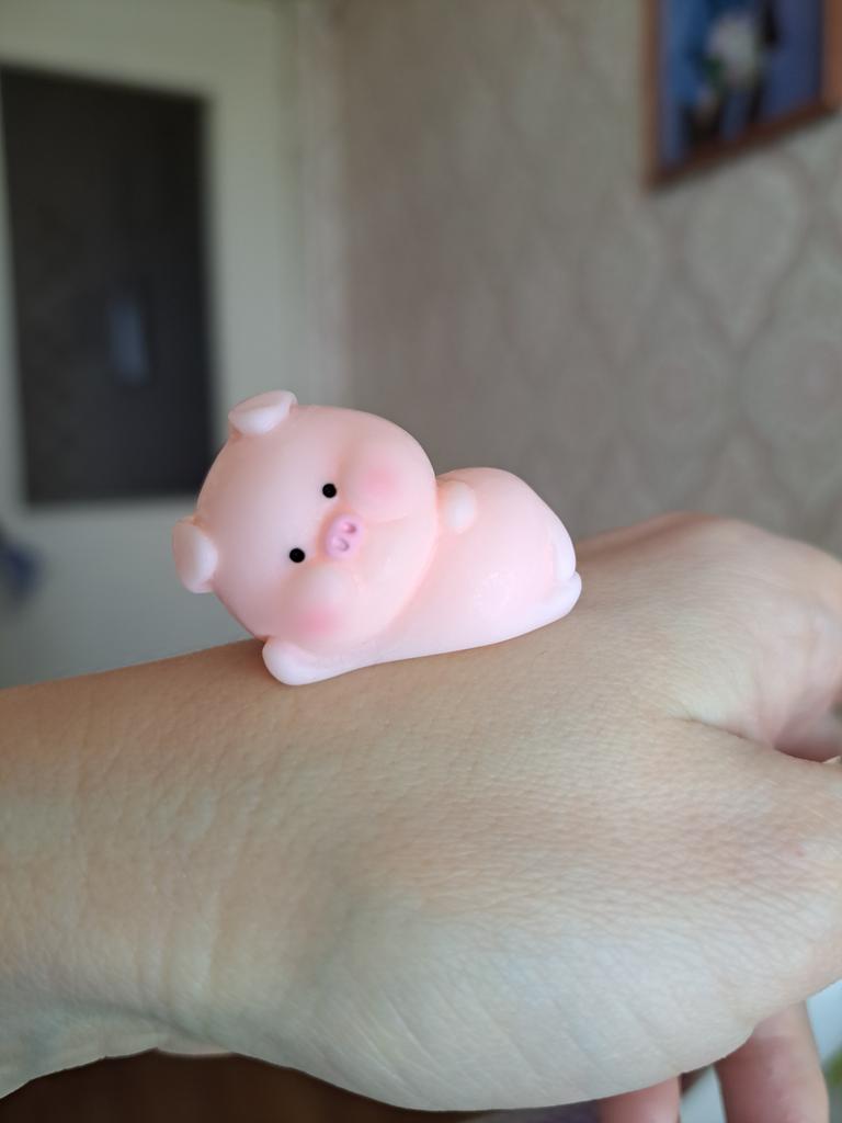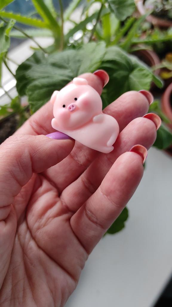 Very cute pig ๐ I thought it was a soft anti-stress material, but it's a tough material, keep in mind. Nevertheless, I am satisfied.nl Now I want to order other figurines to build a collection ๐ Thanks to the seller and Joom ๐ฅฐ