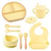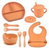 9 Pcs Baby Silicone Bib Divided Dinner Plate Sucker Bowl Spoon Fork Straw Cup Set Training Feeding Food Utensil Dishes