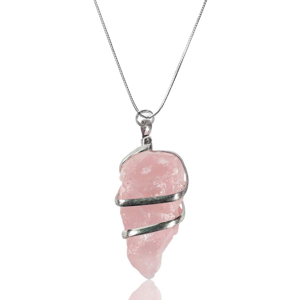 Reiki Rose Quartz Pendant Natural Wire Wrapped Crystal Stone Pendant with Metal Chain Size 30-35 Mm Approx. (Pink)