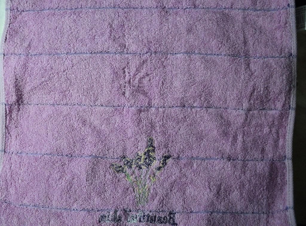 The embroidery is done sloppily - threads are sticking out, but otherwise it's a pretty little towel.