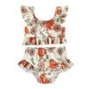 Baby Girls Bikini Set, Flower/Bull Head Print Fly Sleeve Vest with Elastic Waist Briefs Bathing Swimsuit for Summer Beach