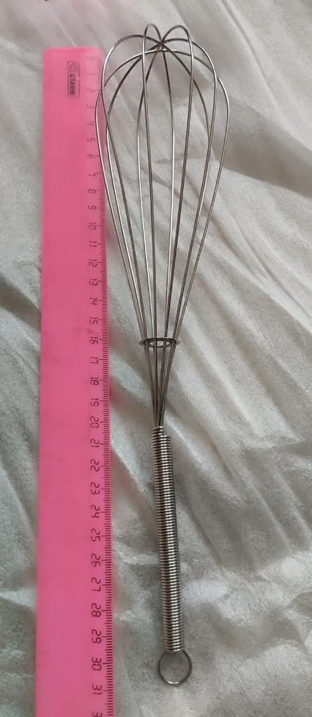 Nice neat whisk. Small. I liked it, convenient. Thank you to Jum and the seller