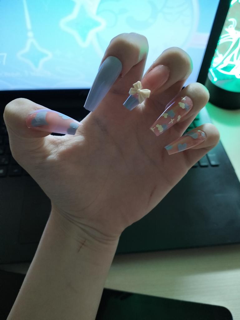 Butterfly False Nails Pearl Bow Long French Fake Nails With Glue Full Cover Nail Tips for Girls Manicure Nail Art Decoration