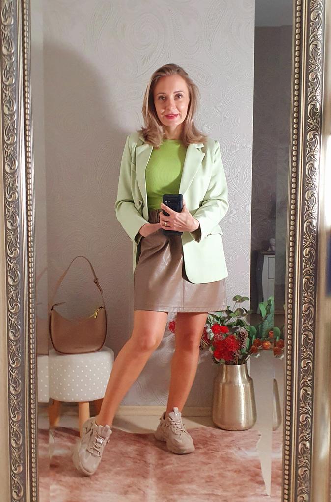 Fashion Krean Loose Green Blazer for Women with Belt Buttons Loose Black Coat