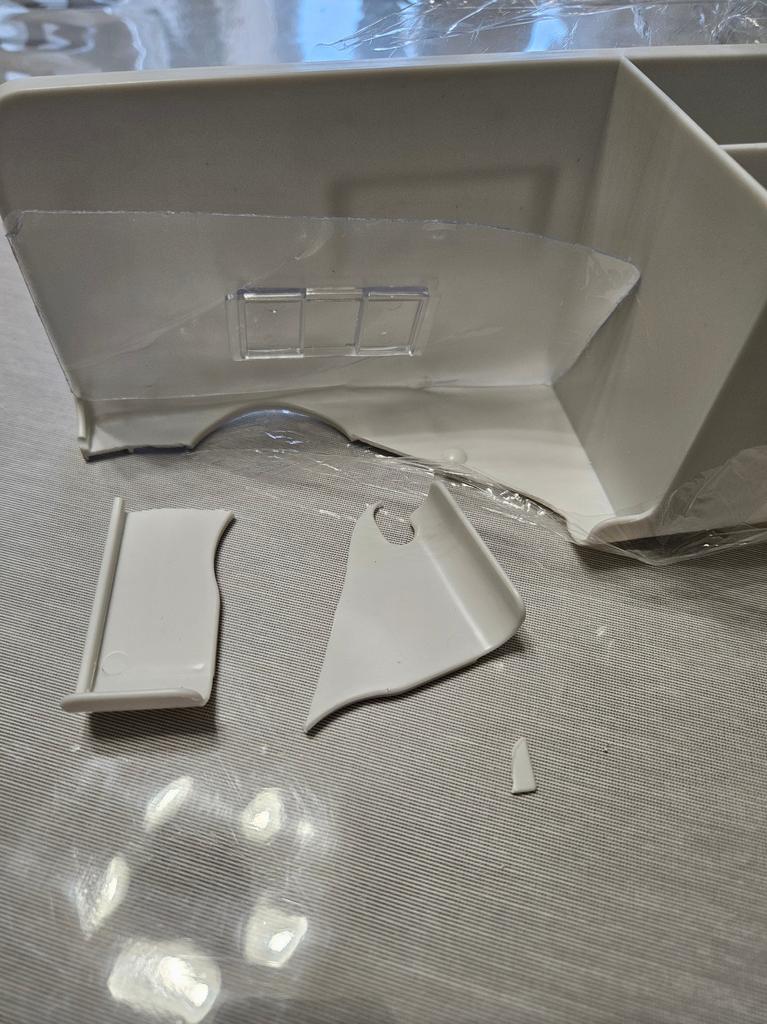 Broken, packed in soft packaging, such a fragile product could have been placed in a hard box