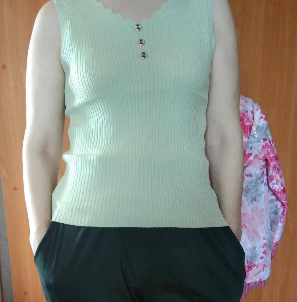 *T-shirt 💚 . The arrival time in Spain was 15 days well wrapped The size of the shirt is M, for my measurements 88-67-92 it is a bit big, it is light green, it has three little buttons that are for decoration, they have no function. . The shirt is cool, it's like thread, on the neck it has some roundness. 🌺 HAPPY SHOPPING 🌺