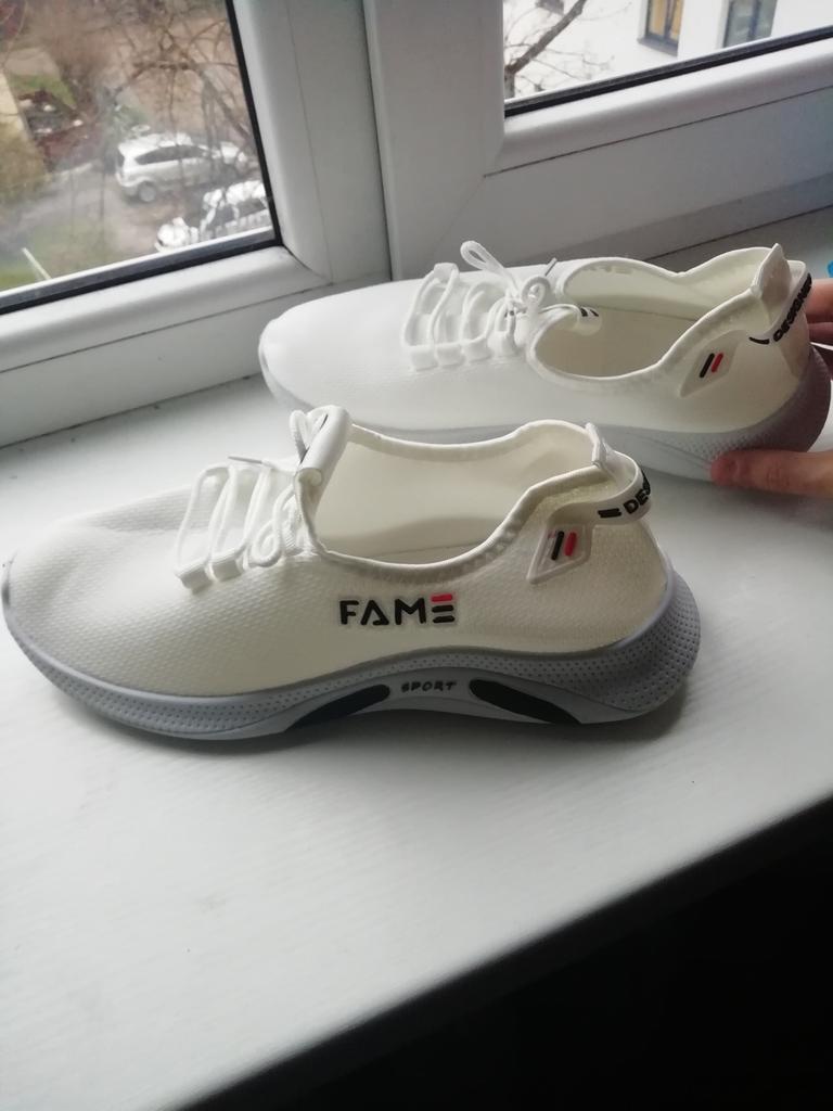 The product does not correspond to the description: the color is not white. The size is much larger than 43. There is no pattern on the top. I showed the second sneaker for size comparison. Both are 43.