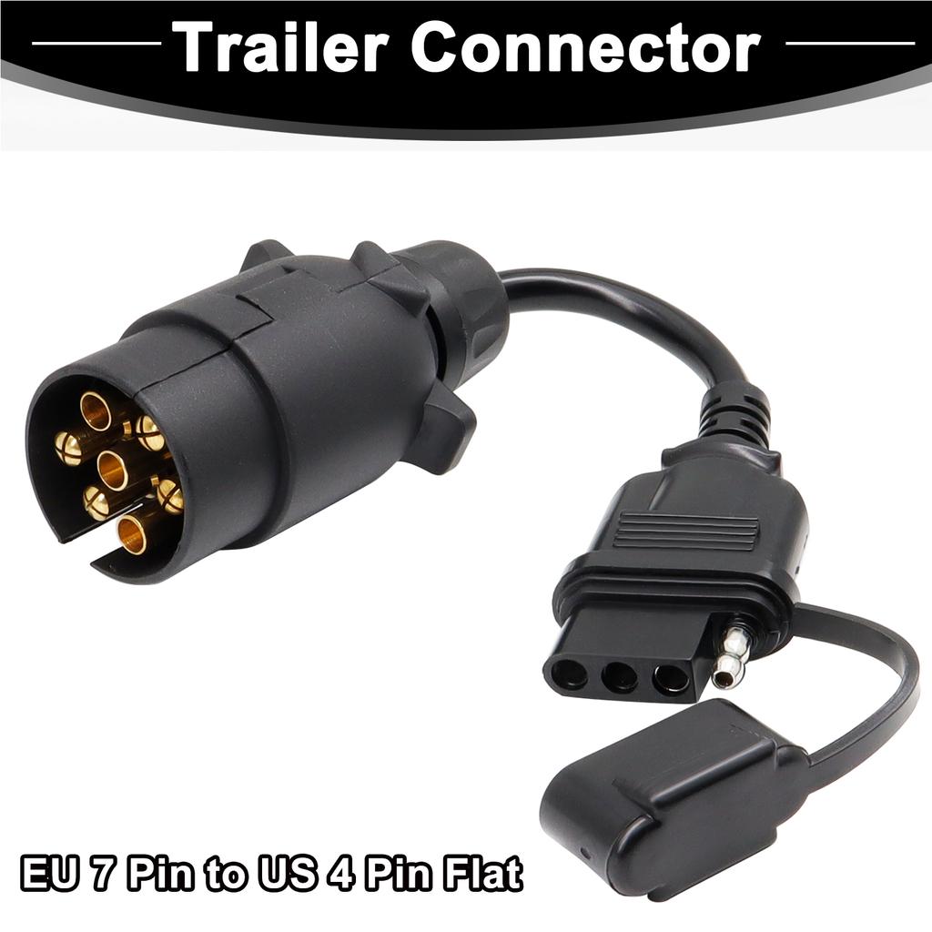 EU To US Trailer Light Converter 7 Pin Round Adapter European Trailer To 4 Pin Flat Socket American Vehicle Tow Hitch Wire Plug
