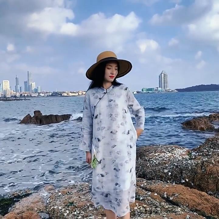 Johnature Women Vintage Stand Spring Dress Print Floral Ramie Button Cheongsam High Quality A-Line Women Dresses