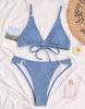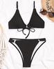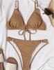 Women's Swimsuit Solid Color Pit Strip Triangle V Neck Sexy Back Tie Bikini Beachwear Bathing Suits