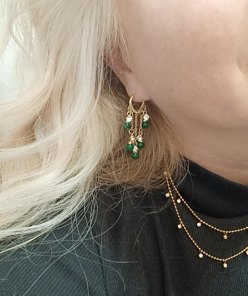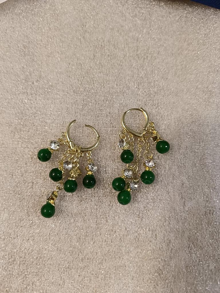 1 Pair Korean Fashion Green Beads Long Tassel Earrings for Women Wedding Party Anniversary Gift Jewelry