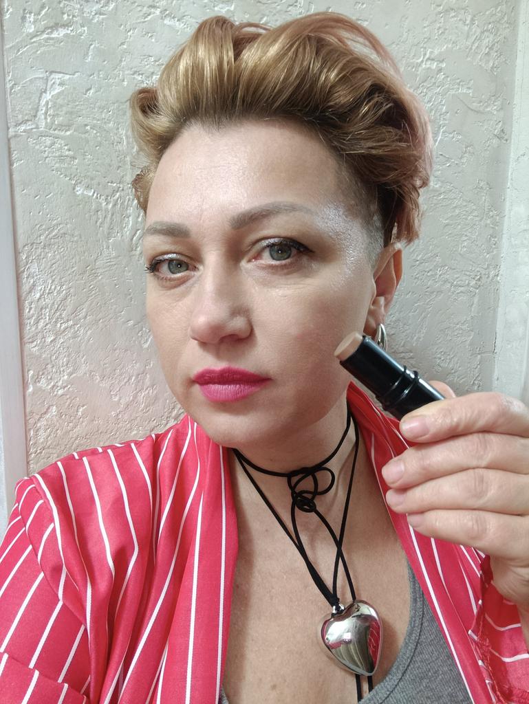 Sculptor ☺️ It has the convenient shape of a thick stick pencil, which allows you to quickly correct facial features. A creamy texture that can be easily applied and blended. Provides an opportunity to model the face, creating a play of light and shadow. Apply a dark shade under the cheekbones, forehead line and the edges of the face oval. If you need to narrow the nose, you can darken its wings. It will become an indispensable tool for everyday and evening make-up. It is suitable for all skin types. The tool is easily blended, helps to correct the shape of the face.