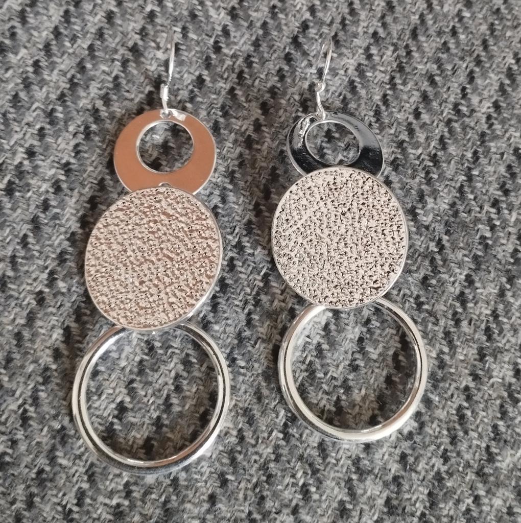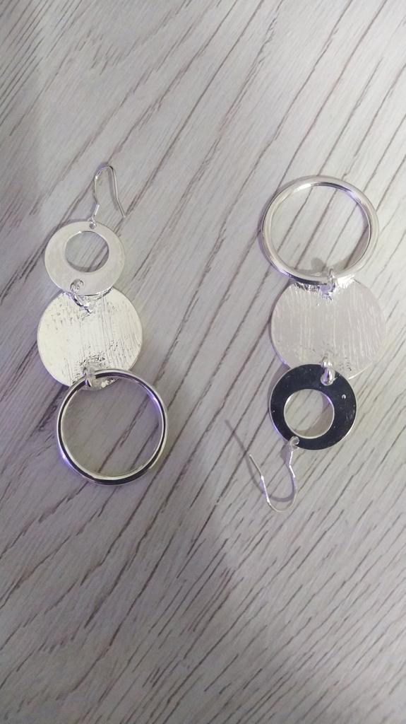 925 Sterling Silver Three Circle Matte Drop Earrings Jewelry