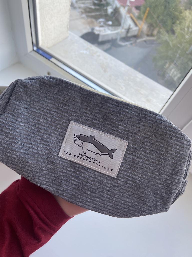 Shark Pencil Case Corduroy Pen Case Kawaii Stationery Large Capacity Pencilcase