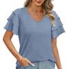 Casual Loose Summer Womens Shirts 2023 Fashion Short Sleeve Chiffon Blouse Women Tops Elegant Female Clothing V Neck 26486