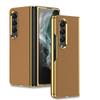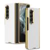 Luxury Electroplated Surface Plain Leather Phone Case For Samsung Galaxy Z Fold 4 Hard Slim Shockproof Back Cover