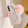Colorful Heart Purikura Photo Frame Beads Bracelet Plush Pendant Phone Case For Samsung Galaxy Z Fold 3 Hard Transparent Cover