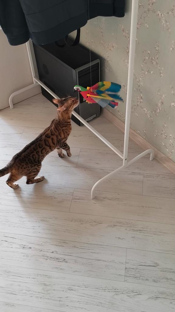 Very noisy toy, needs two batteries and not three as in the description, there is no off button and as soon as you insert the batteries it starts moving. The cat didn't like it, even when it's off. I don't recommend buying it