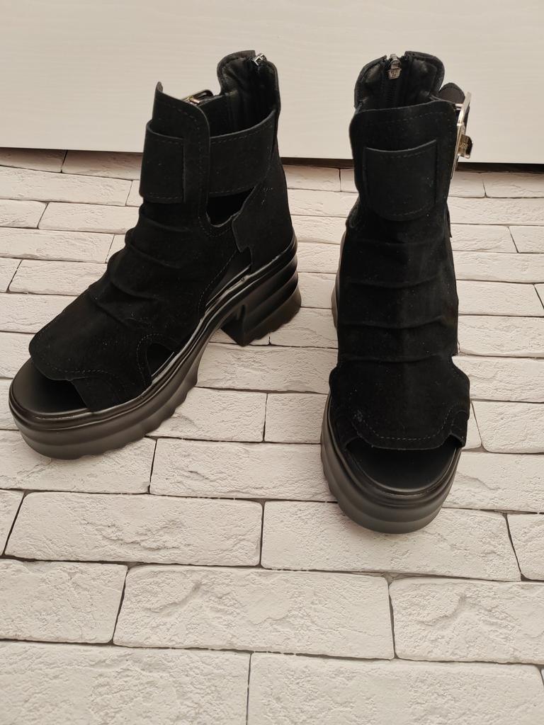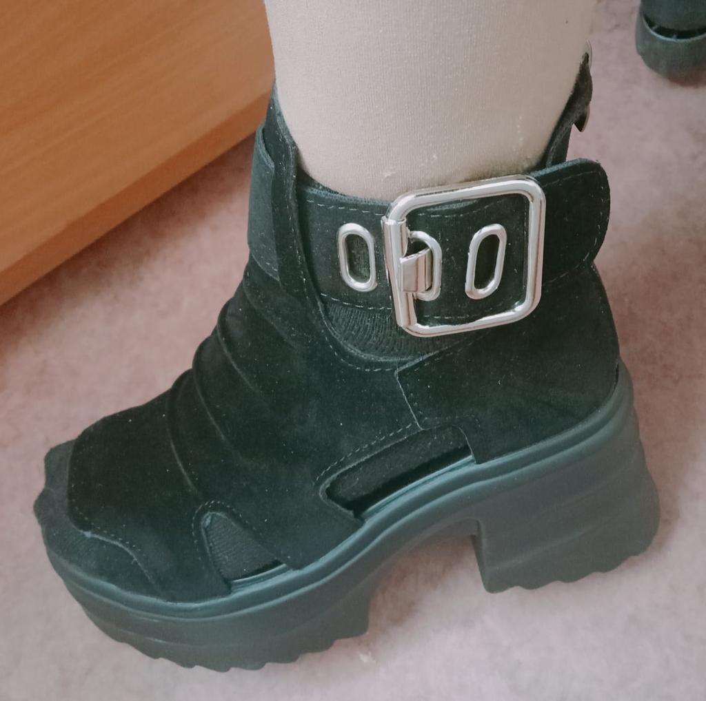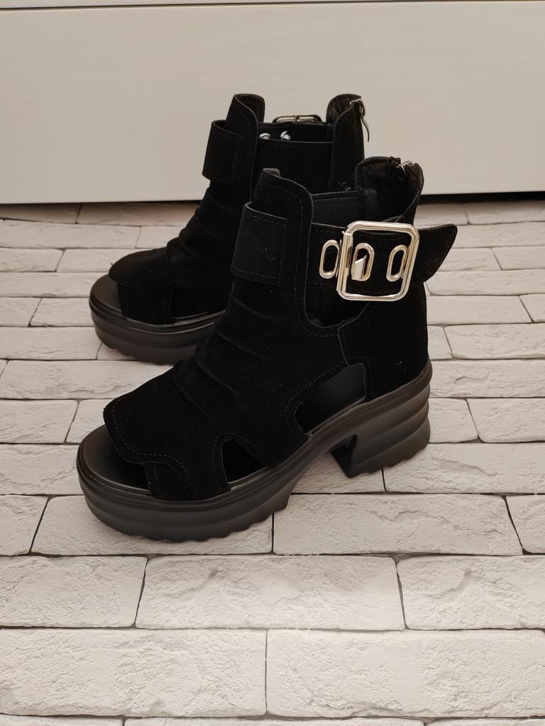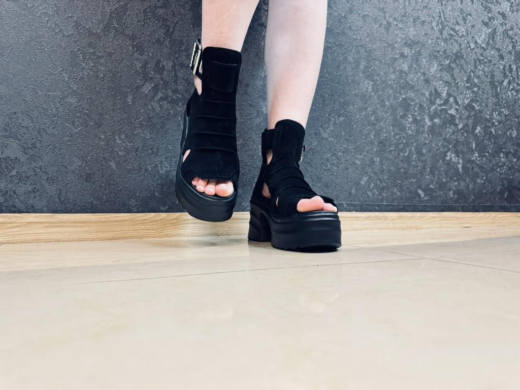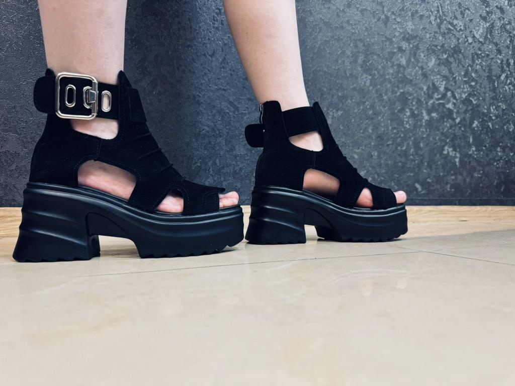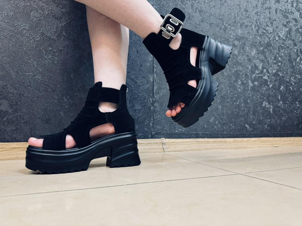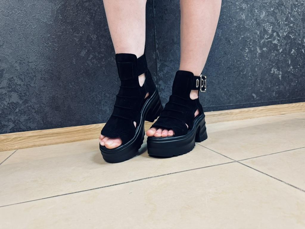 Women's platform sandals with a wide heel. Beautiful and stylish design. Made of suede. The leg is not rubbed. It will suit even those girls who have a wide leg. You can adjust the width of the leg. I took size 36 for my size 36. They fit me perfectly. Fastens with a snake in the back. The seller has 3 color options to choose from. Great summer sandals. I liked them.