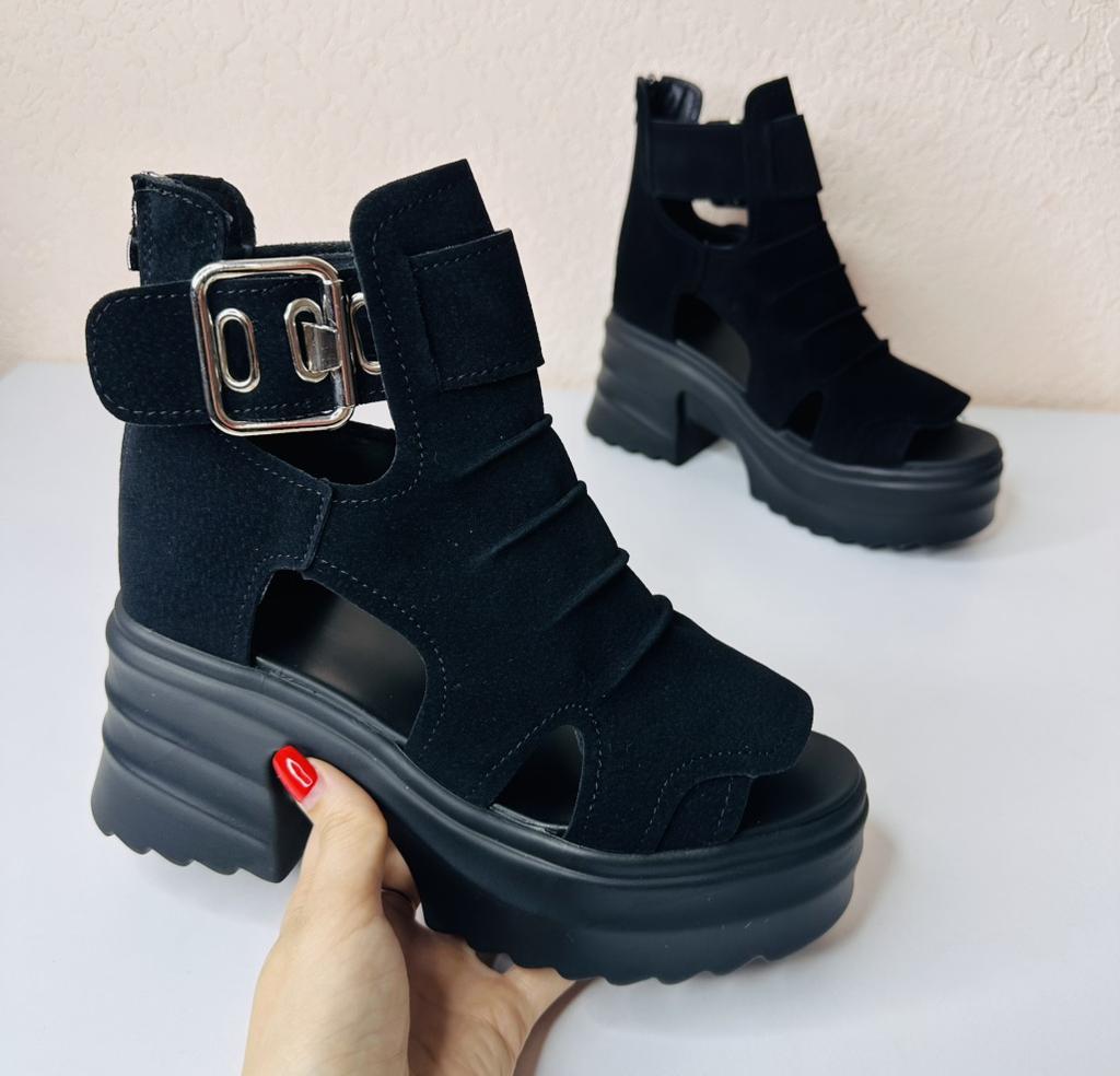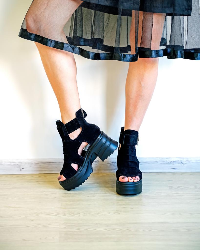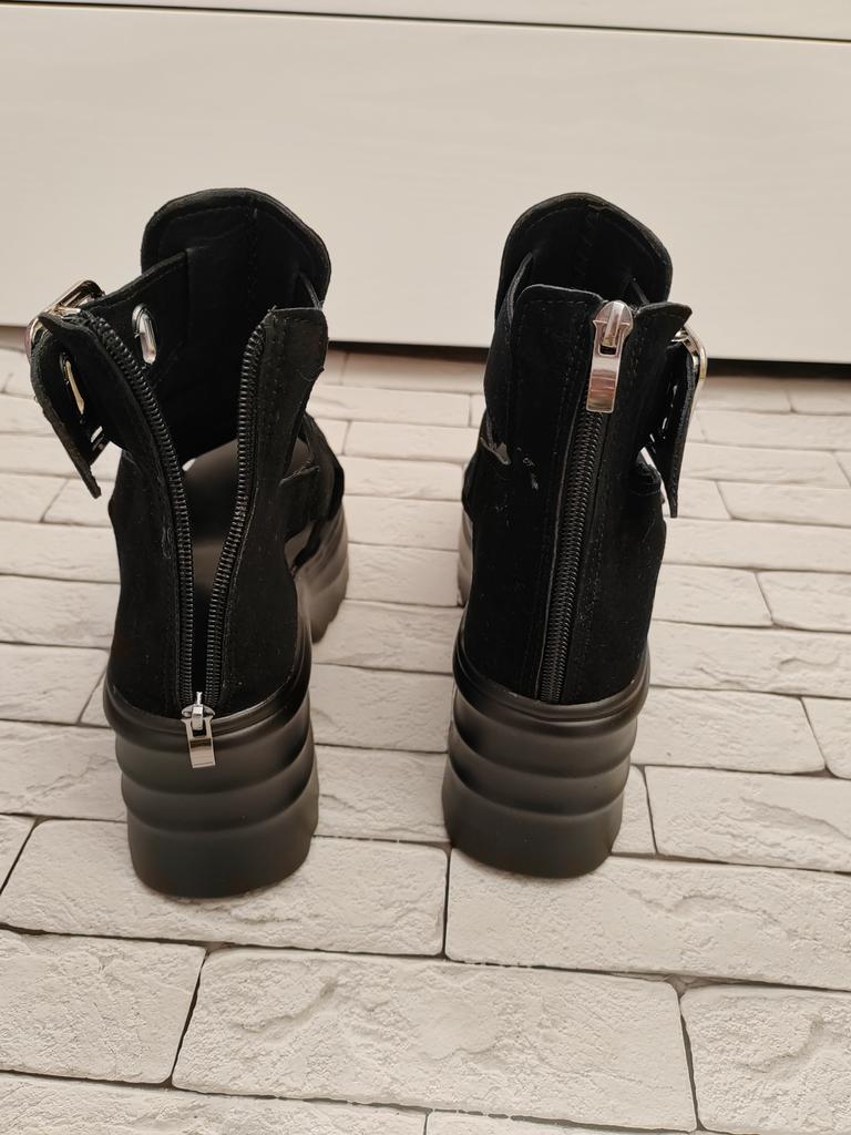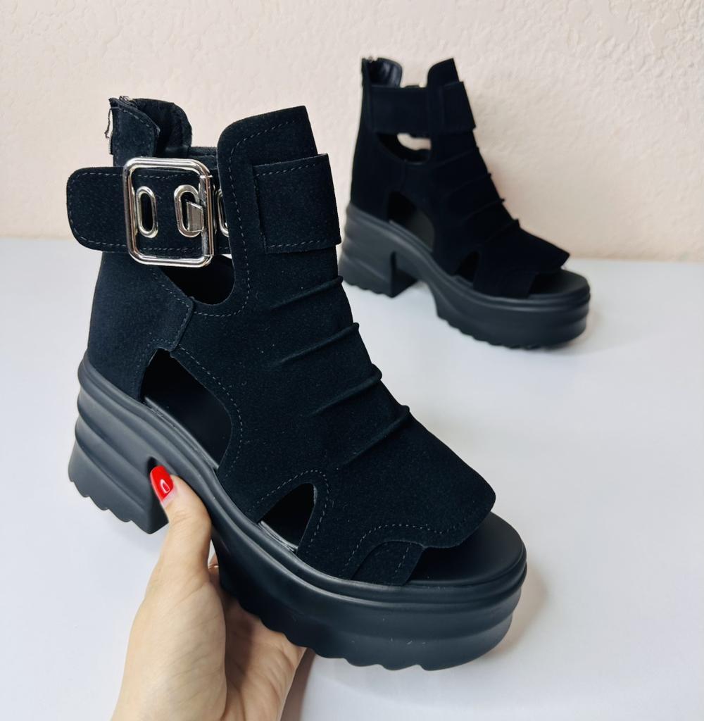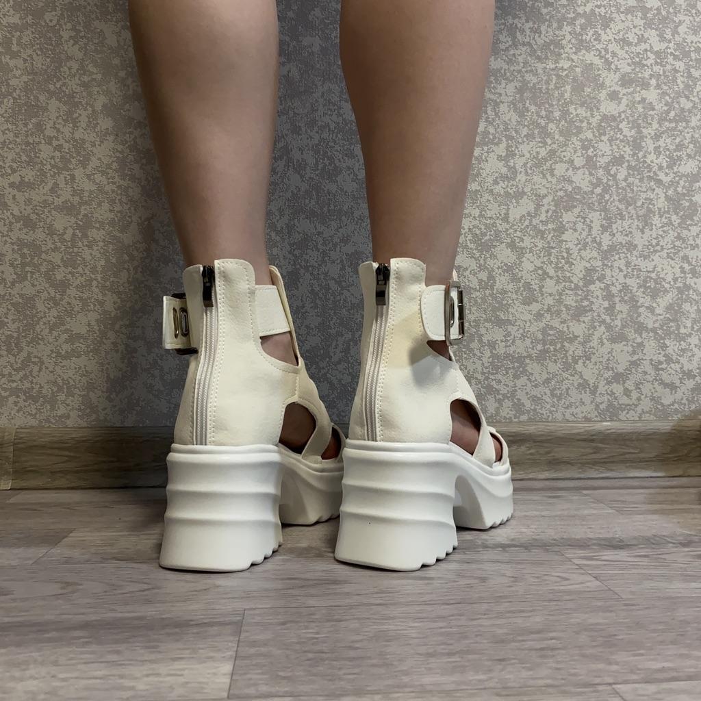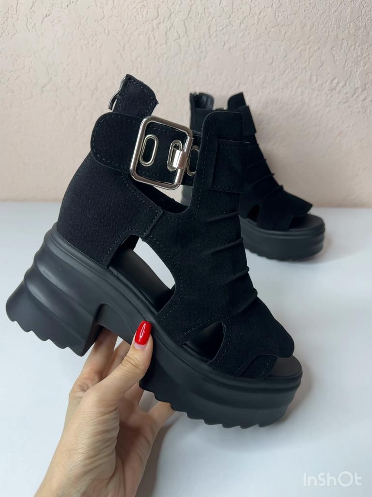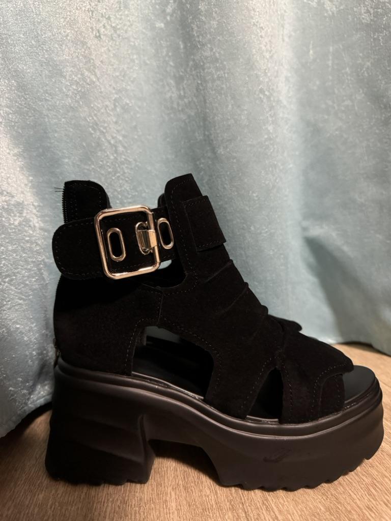 Women's platform sandals with a wide heel. Beautiful and stylish design. Made of suede. The leg is not rubbed. It will suit even those girls who have a wide leg. You can adjust the width of the leg. I took size 36 for my size 36. They fit me perfectly. Fastens with a snake in the back. The seller has 3 color options to choose from. Great summer sandals. I liked them.