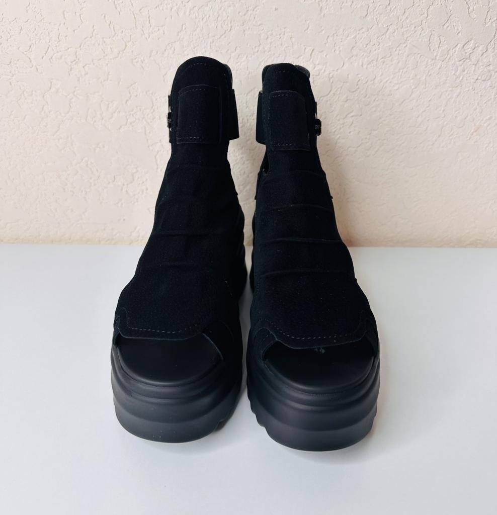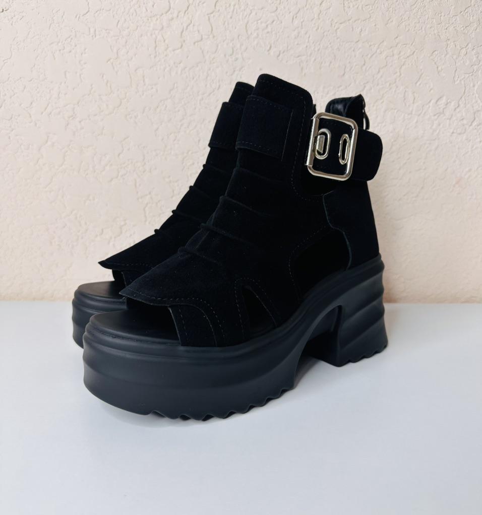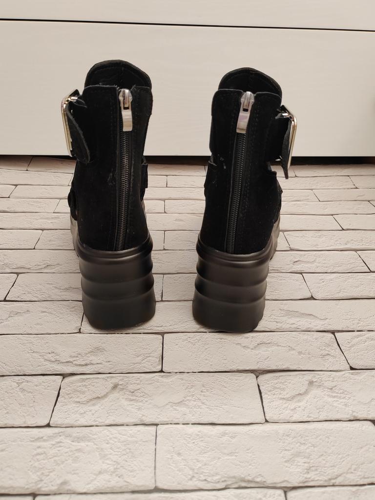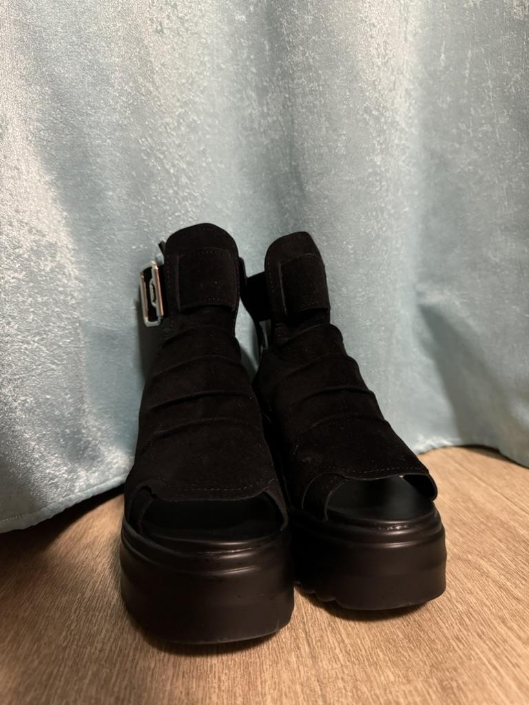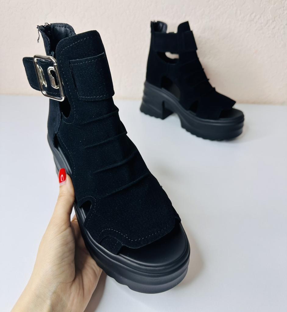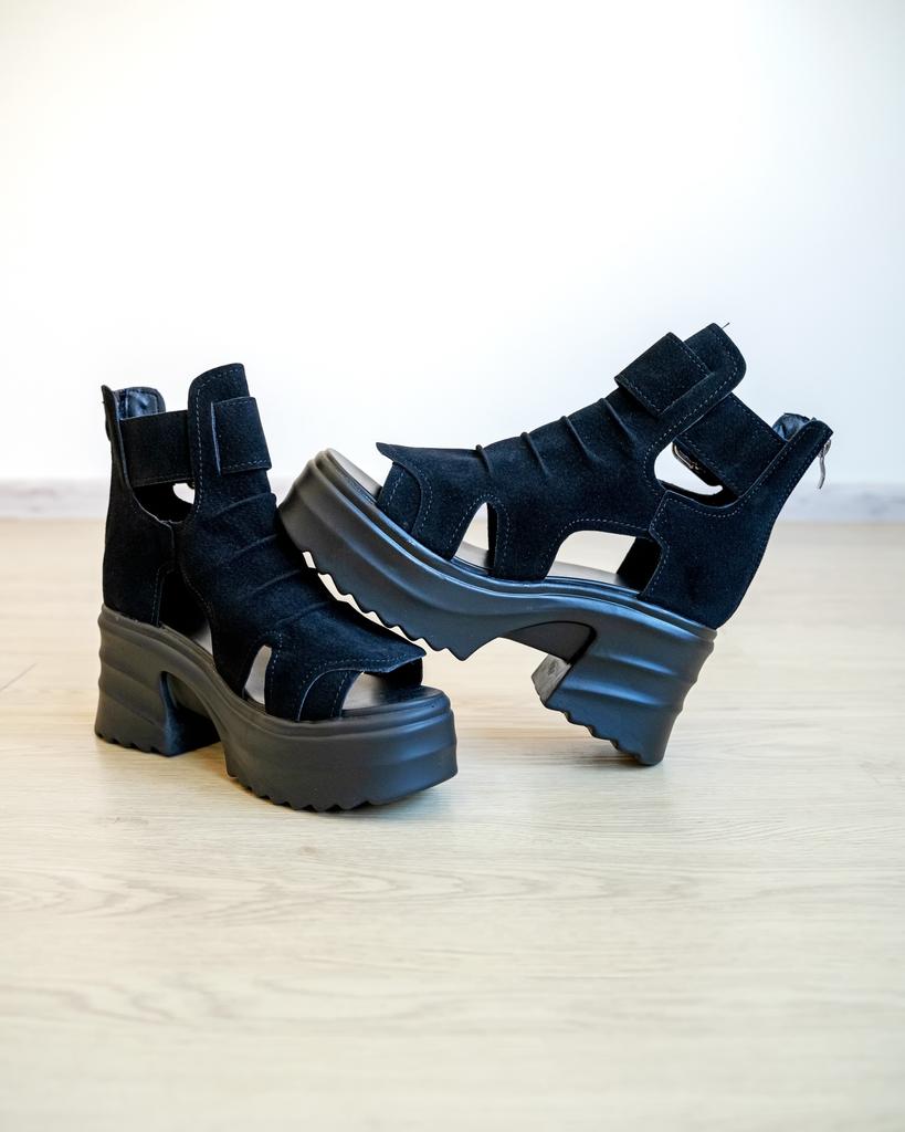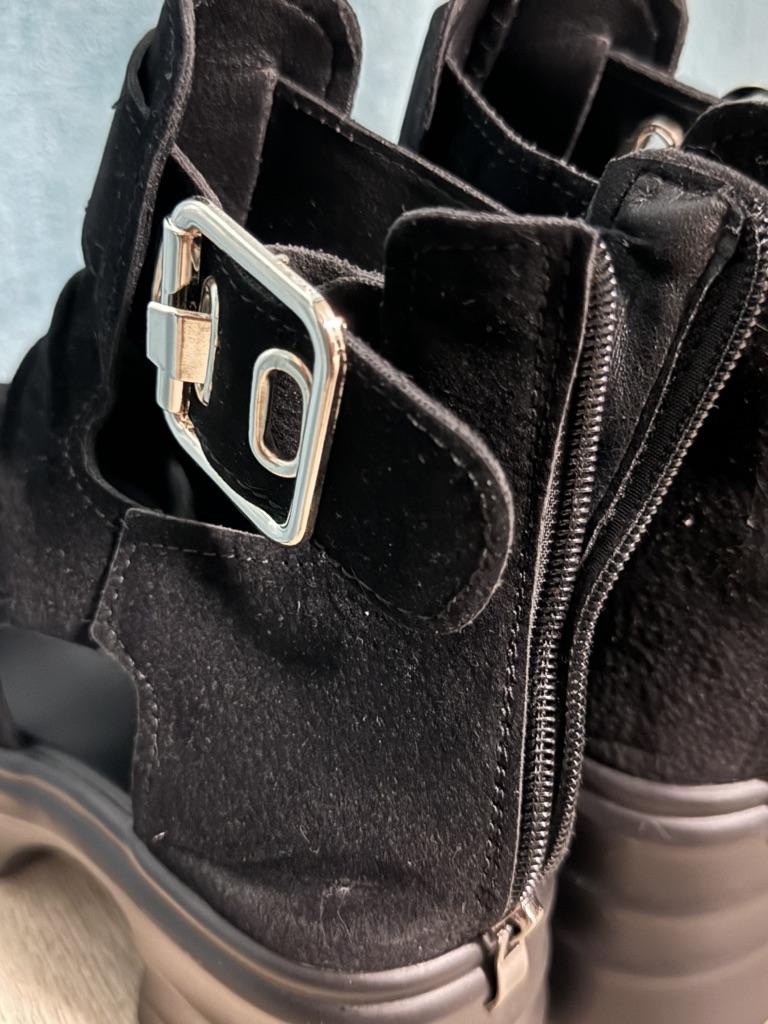 Women's platform sandals with a wide heel. Beautiful and stylish design. Made of suede. The leg is not rubbed. It will suit even those girls who have a wide leg. You can adjust the width of the leg. I took size 36 for my size 36. They fit me perfectly. Fastens with a snake in the back. The seller has 3 color options to choose from. Great summer sandals. I liked them.