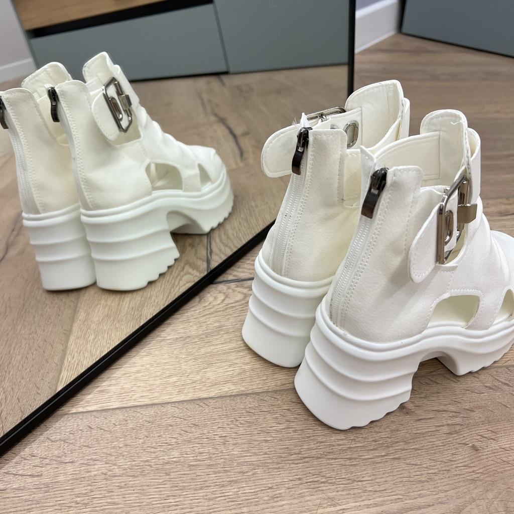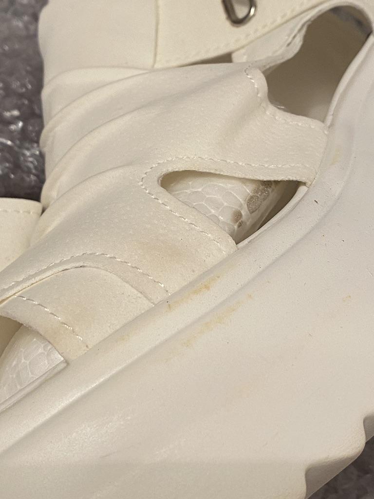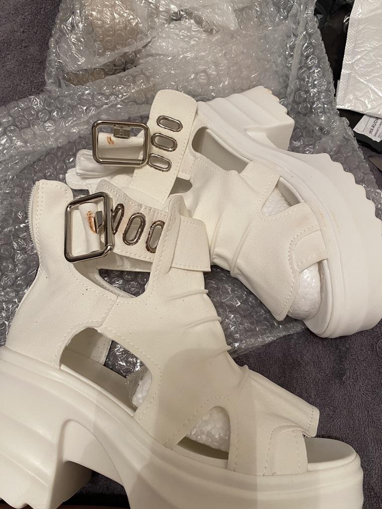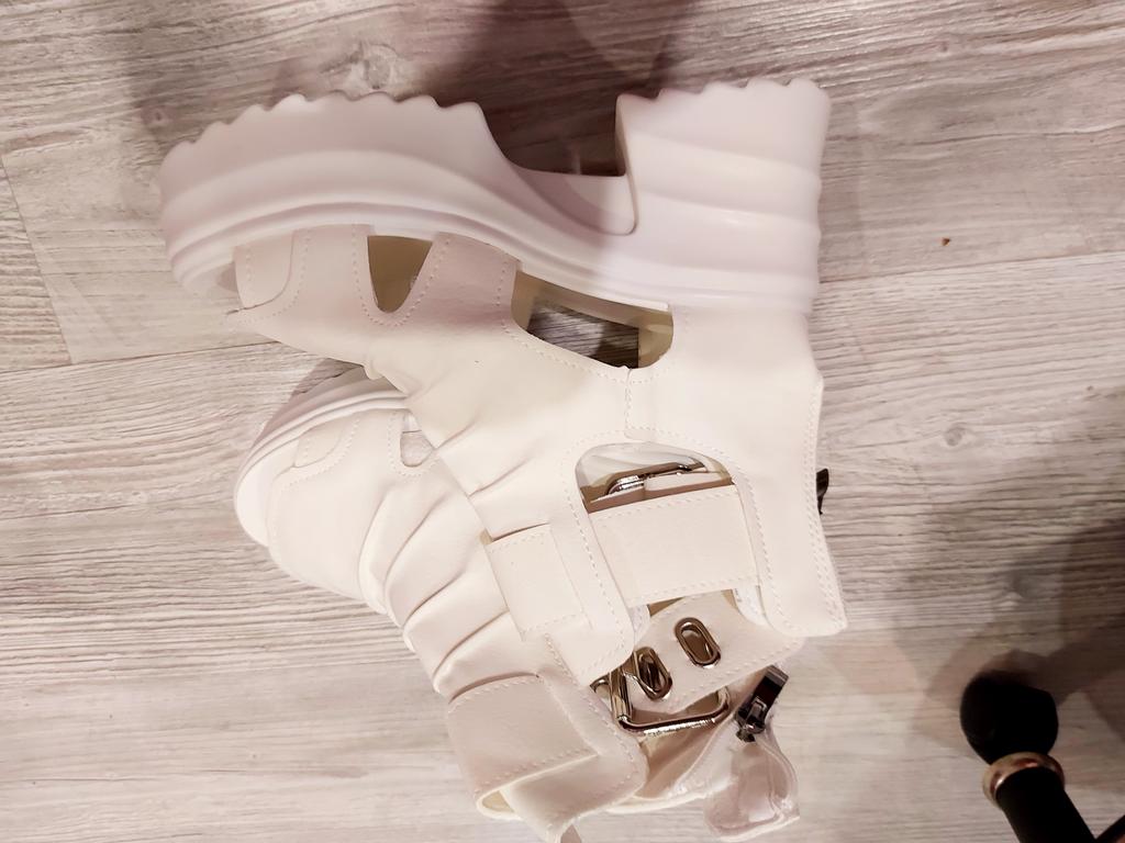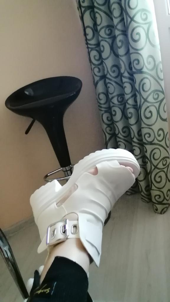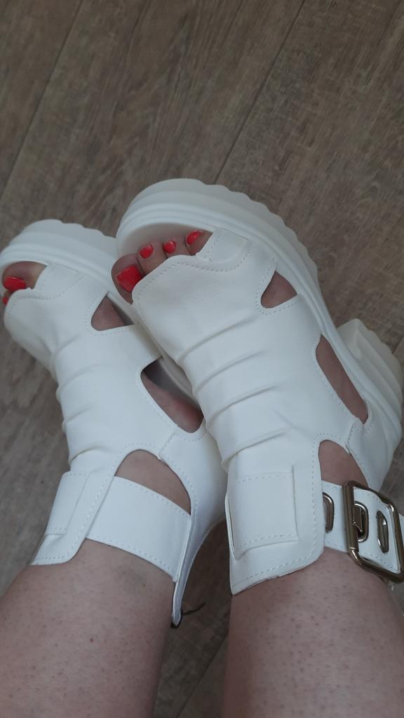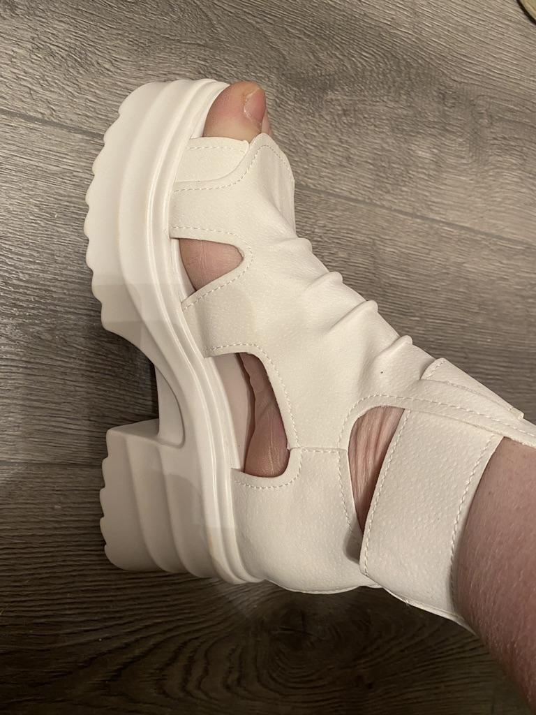 * Plateau- High Heels* 💥𝗟𝗶𝗲𝗳𝗲𝗿𝘇𝗲𝗶𝘁 23 Roofs 💥𝗟𝗶𝗲𝗳𝗲𝗿𝘂𝗺𝗳𝗮𝗻𝗴 The scope of delivery includes 1 pair of shoes in the appropriate color and size. They are available in 3 different colors (beige, black and white) in sizes 35-39. I ordered the shoes in size 39 in white. I'm normally a shoe size 40... So I can say that they are true to size... 💥𝗤𝘂𝗮𝗹𝗶𝘁ä𝘁 Unfortunately I'm disappointed with the quality, the seams and sole are not well glued. There is adhesive residue on the front of the sole and the artificial leather doesn't feel high enough, so the shoe probably won't last long. The sole feels like cheap plastic and makes strange noises when you walk. However, I like the design of the shoes. They are a beautiful eye-catcher. It's practical that you don't have to open the shoes using the buckle, but you can quickly slip into the shoes from the back by opening a zipper. The shoes are not at all as heavy as expected... despite the platform sole.. For material composition : Unknown, but don't think it's real leather 💥𝗙𝗮𝘇𝗶𝘁 Very nice platform shoes, but I was a little disappointed in quality. They are true to size, so you can order your original size. 👌