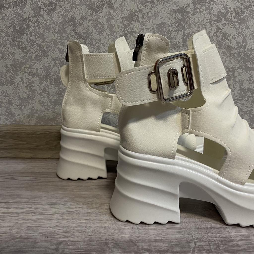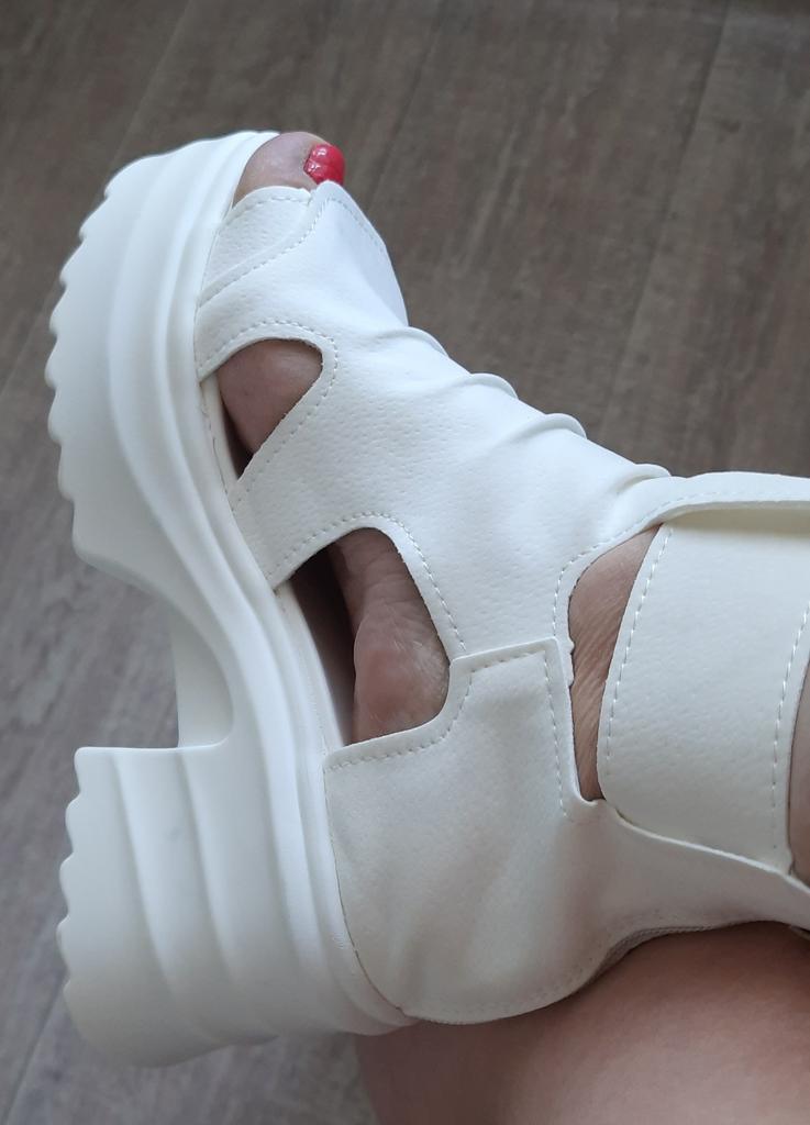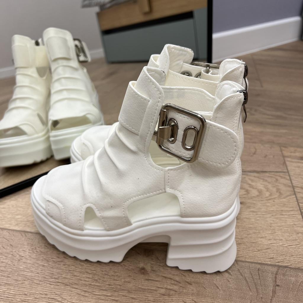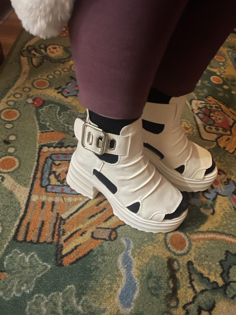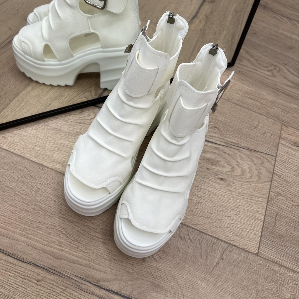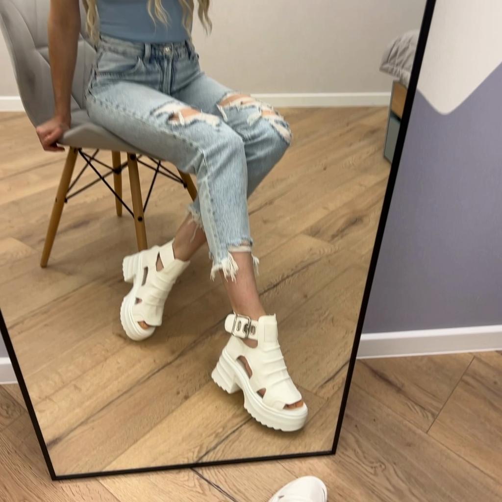 * Plateau- High Heels* 💥𝗟𝗶𝗲𝗳𝗲𝗿𝘇𝗲𝗶𝘁 23 Roofs 💥𝗟𝗶𝗲𝗳𝗲𝗿𝘂𝗺𝗳𝗮𝗻𝗴 The scope of delivery includes 1 pair of shoes in the appropriate color and size. They are available in 3 different colors (beige, black and white) in sizes 35-39. I ordered the shoes in size 39 in white. I'm normally a shoe size 40... So I can say that they are true to size... 💥𝗤𝘂𝗮𝗹𝗶𝘁ä𝘁 Unfortunately I'm disappointed with the quality, the seams and sole are not well glued. There is adhesive residue on the front of the sole and the artificial leather doesn't feel high enough, so the shoe probably won't last long. The sole feels like cheap plastic and makes strange noises when you walk. However, I like the design of the shoes. They are a beautiful eye-catcher. It's practical that you don't have to open the shoes using the buckle, but you can quickly slip into the shoes from the back by opening a zipper. The shoes are not at all as heavy as expected... despite the platform sole.. For material composition : Unknown, but don't think it's real leather 💥𝗙𝗮𝘇𝗶𝘁 Very nice platform shoes, but I was a little disappointed in quality. They are true to size, so you can order your original size. 👌