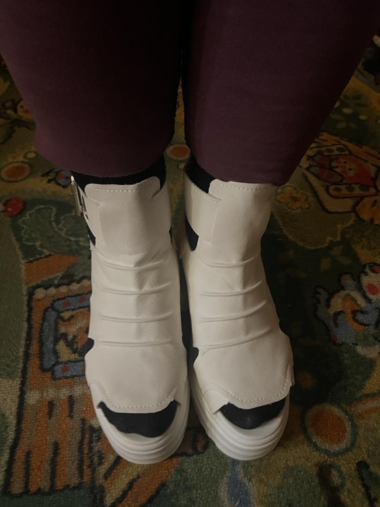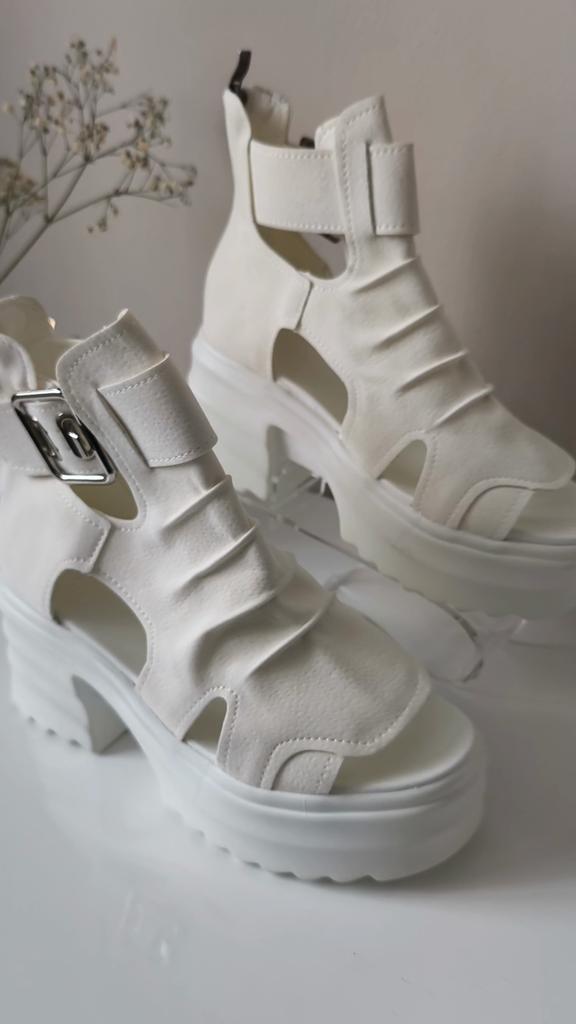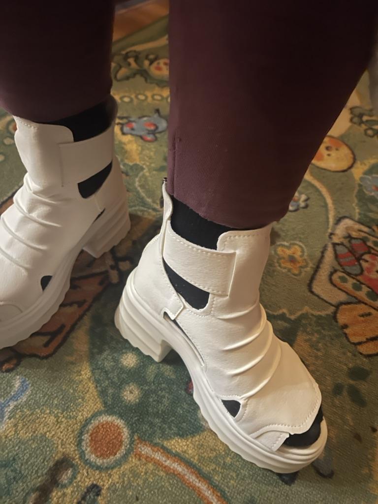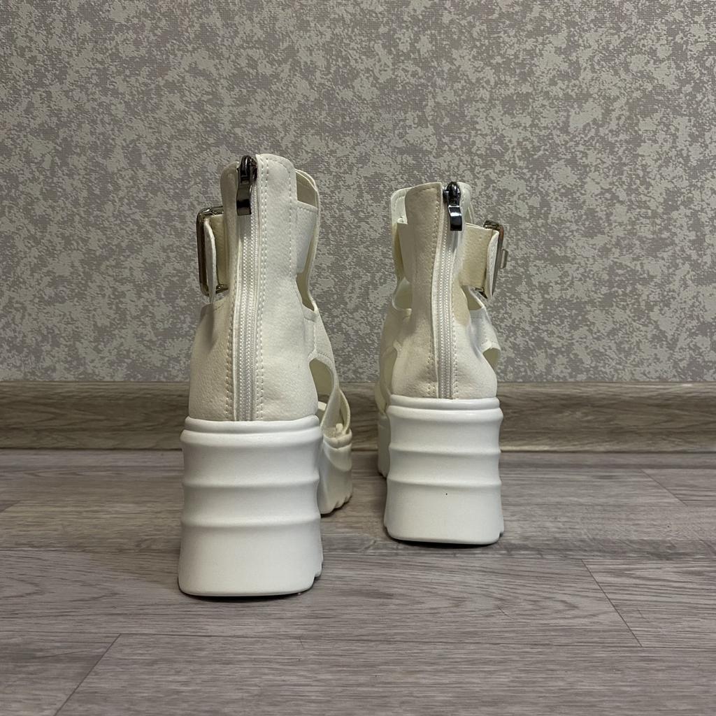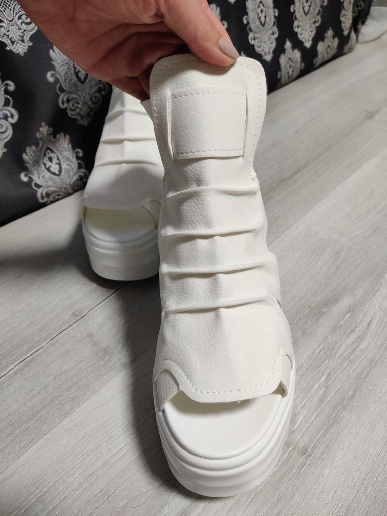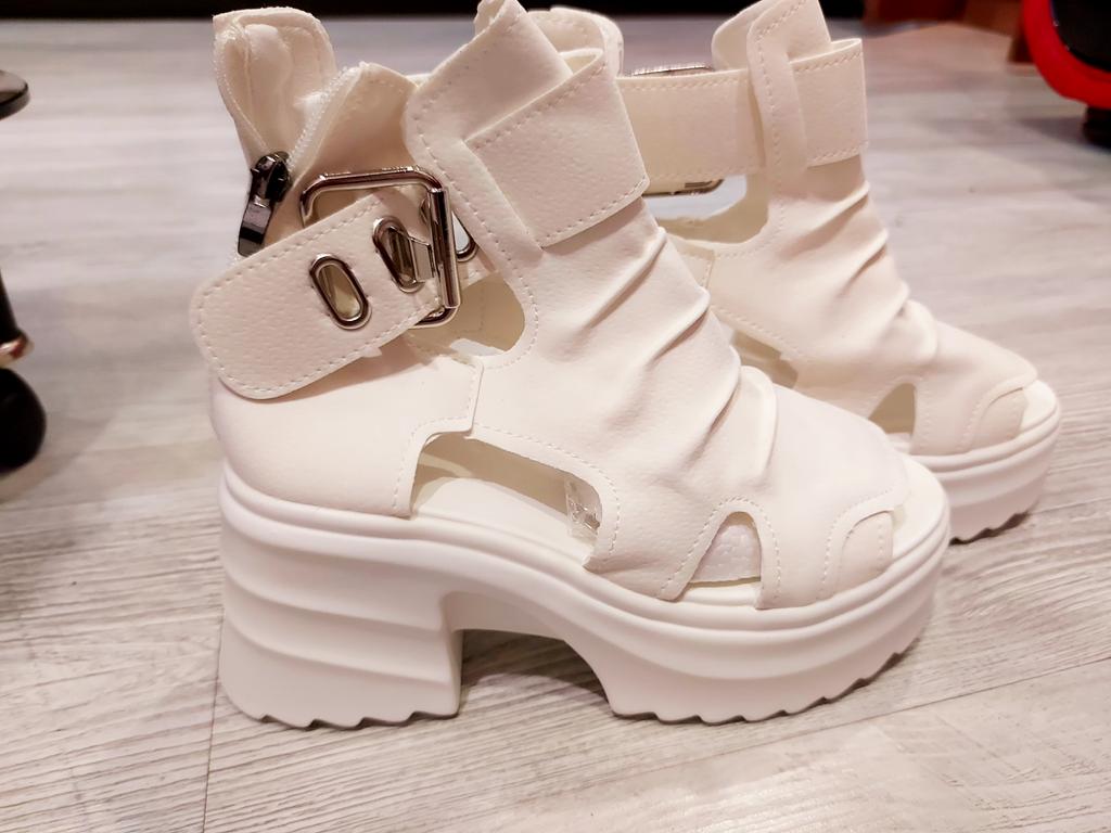 * Plateau- High Heels* 💥𝗟𝗶𝗲𝗳𝗲𝗿𝘇𝗲𝗶𝘁 23 Roofs 💥𝗟𝗶𝗲𝗳𝗲𝗿𝘂𝗺𝗳𝗮𝗻𝗴 The scope of delivery includes 1 pair of shoes in the appropriate color and size. They are available in 3 different colors (beige, black and white) in sizes 35-39. I ordered the shoes in size 39 in white. I'm normally a shoe size 40... So I can say that they are true to size... 💥𝗤𝘂𝗮𝗹𝗶𝘁ä𝘁 Unfortunately I'm disappointed with the quality, the seams and sole are not well glued. There is adhesive residue on the front of the sole and the artificial leather doesn't feel high enough, so the shoe probably won't last long. The sole feels like cheap plastic and makes strange noises when you walk. However, I like the design of the shoes. They are a beautiful eye-catcher. It's practical that you don't have to open the shoes using the buckle, but you can quickly slip into the shoes from the back by opening a zipper. The shoes are not at all as heavy as expected... despite the platform sole.. For material composition : Unknown, but don't think it's real leather 💥𝗙𝗮𝘇𝗶𝘁 Very nice platform shoes, but I was a little disappointed in quality. They are true to size, so you can order your original size. 👌